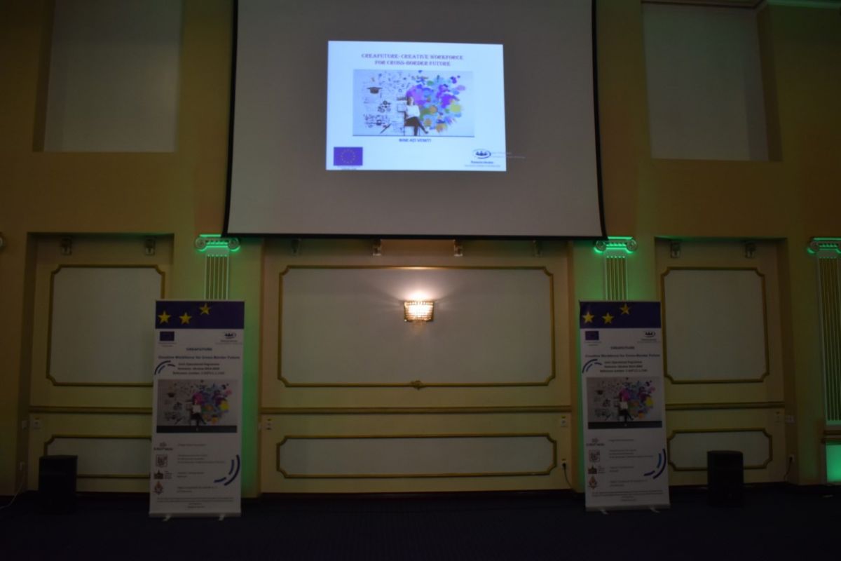 Conferința de închidere a proiectului Proiectul ”CreaFuture - Creative Workforce for Cross-Border Future – Forță de muncă creativă pentru un viitor transfrontalier” a avut loc vineri, 24 septembrie 2021 în sala Mihai Eminescu a Hotelului Rapsodia, cu o prezență de peste 50 de persoane.
