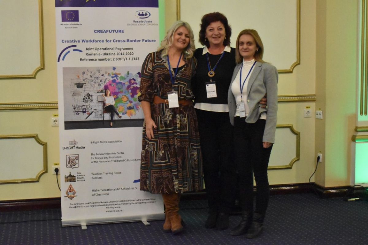 Proiectul ”CreaFuture - Creative Workforce for Cross-Border Future – Forță de muncă creativă pentru un viitor transfrontalier”, nr. de referinţă 2 SOFT/1.1./142, a ajuns la ceasul bilanţului. Este un moment bun pentru liderul de proiect- Asociaţia B-Right Media Botoşani- şi partenerii săi- Casa Corpului Didactic Botoșani, Centrul Bucovinean de Artă pentru Conservarea şi Promovarea Culturii Tradiţionale Româneşti Cernăuţi și Liceul de Arta nr. 5 din Cernăuți, să treacă în revistă realizările proiectului, lecţiile învăţate şi să pună bazele sustenabilităţii activităţilor.
