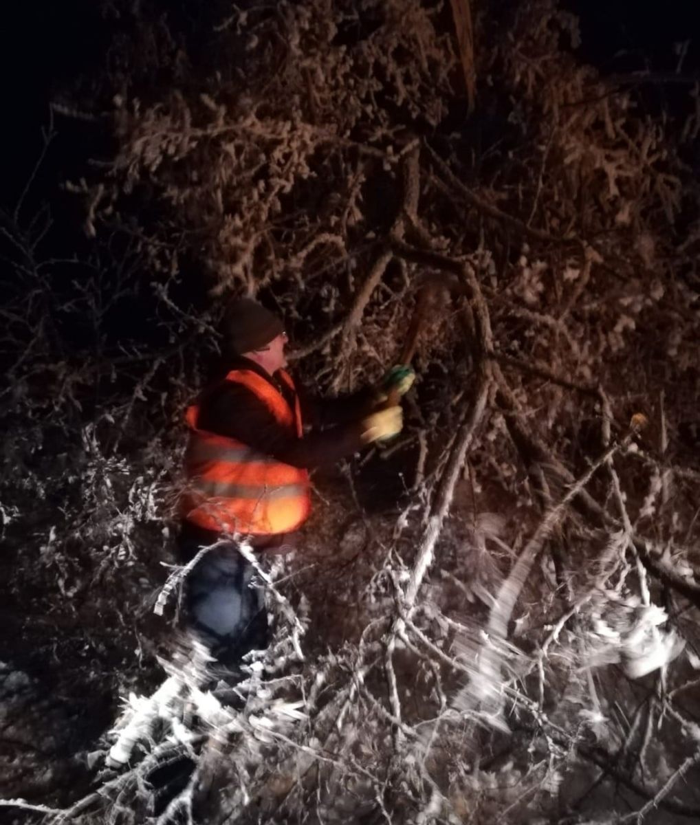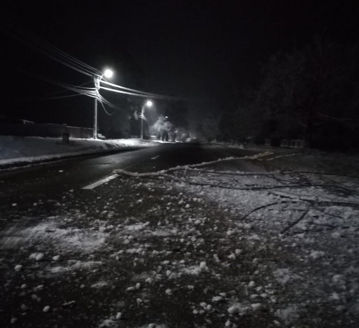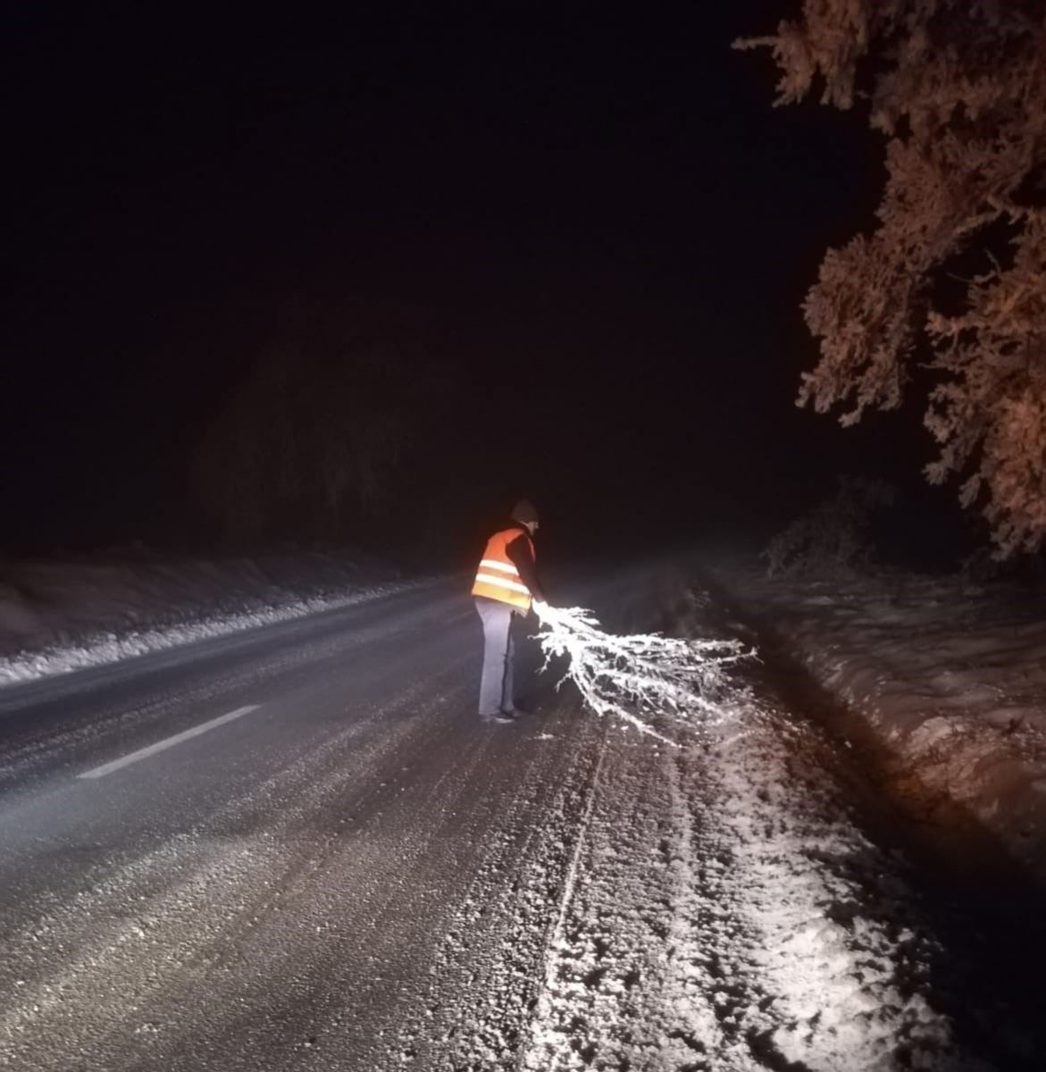 Angajații de la Direcția de Drumuri Naționale au intervenit pe mai multe sectoare de drum pentru degajarea părții carosabile de resturi arboricole prăbușite sub greutatea gheții.