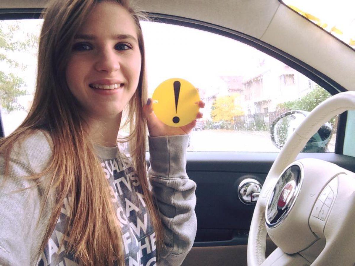 Botoșăneanca a avut, însă, probleme atunci când a trebuit să lipească semnele de începători pe mașina sa personală, iar asta a stârnit amuzament în rândul fanilor. Motivul? Tânăra a postat pe rețeaua socială Facebook un mesaj prin care își întreabă prietenii virtuali unde anume trebuie amplasate semnele: ”Ajutoor! Vlad e la facultate și nu poate să-mi răspundă la telefon... Cum se pun semnele de începători?”,