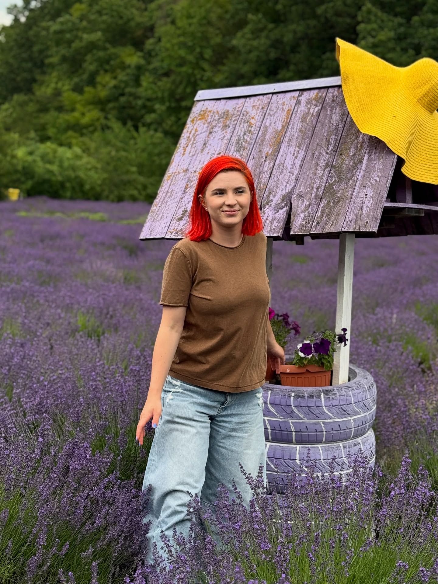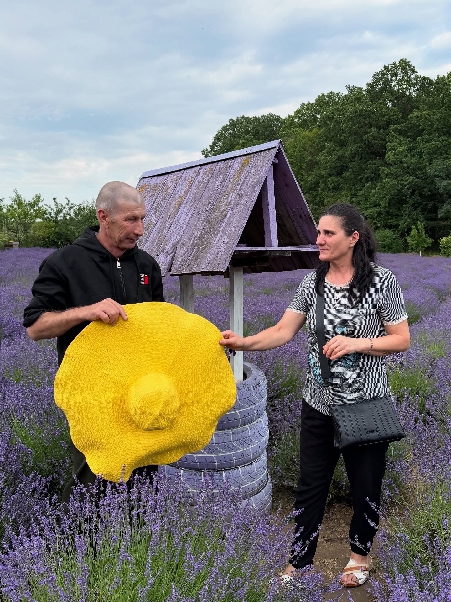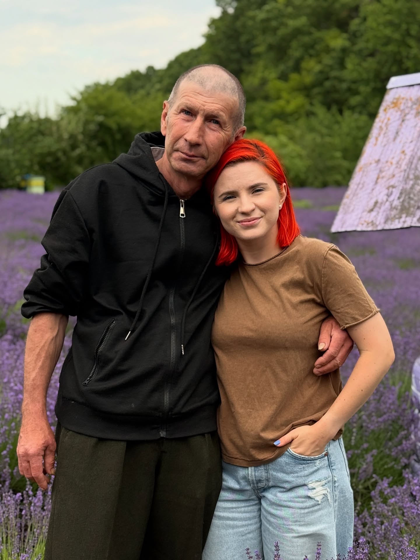 În imagini, actrița apare relaxată și zâmbitoare, cu părinții ei, înconjurați de lavandă și natură, semn că vizita acasă i-a adus liniște și bucurie.