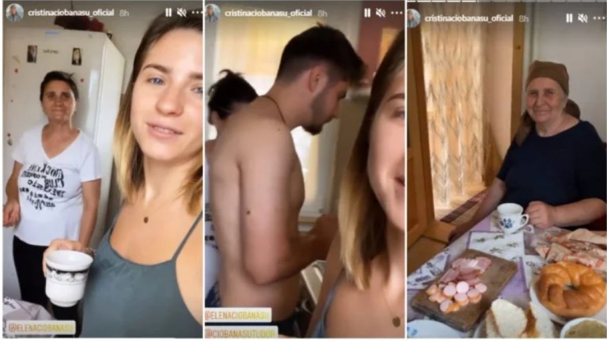 „Noi ne bem cafeluța împreună. În sfârșit, bea și mama cafeluță, până acum a robotit. Am ajuns aseară pe la două și ne-am culcat pe la patru. Bunica trage ca ursul la miere. A văzut că e de mâncare și cafeluță și a venit și ea. A venit să salute copiii, frumusețile”,