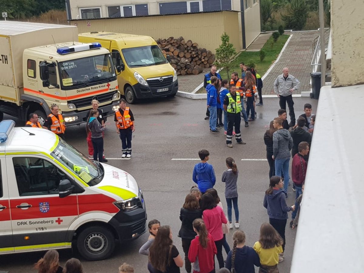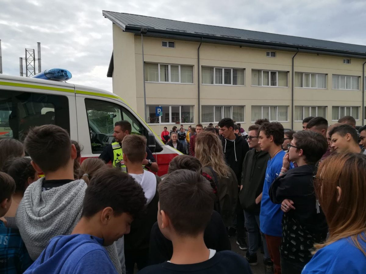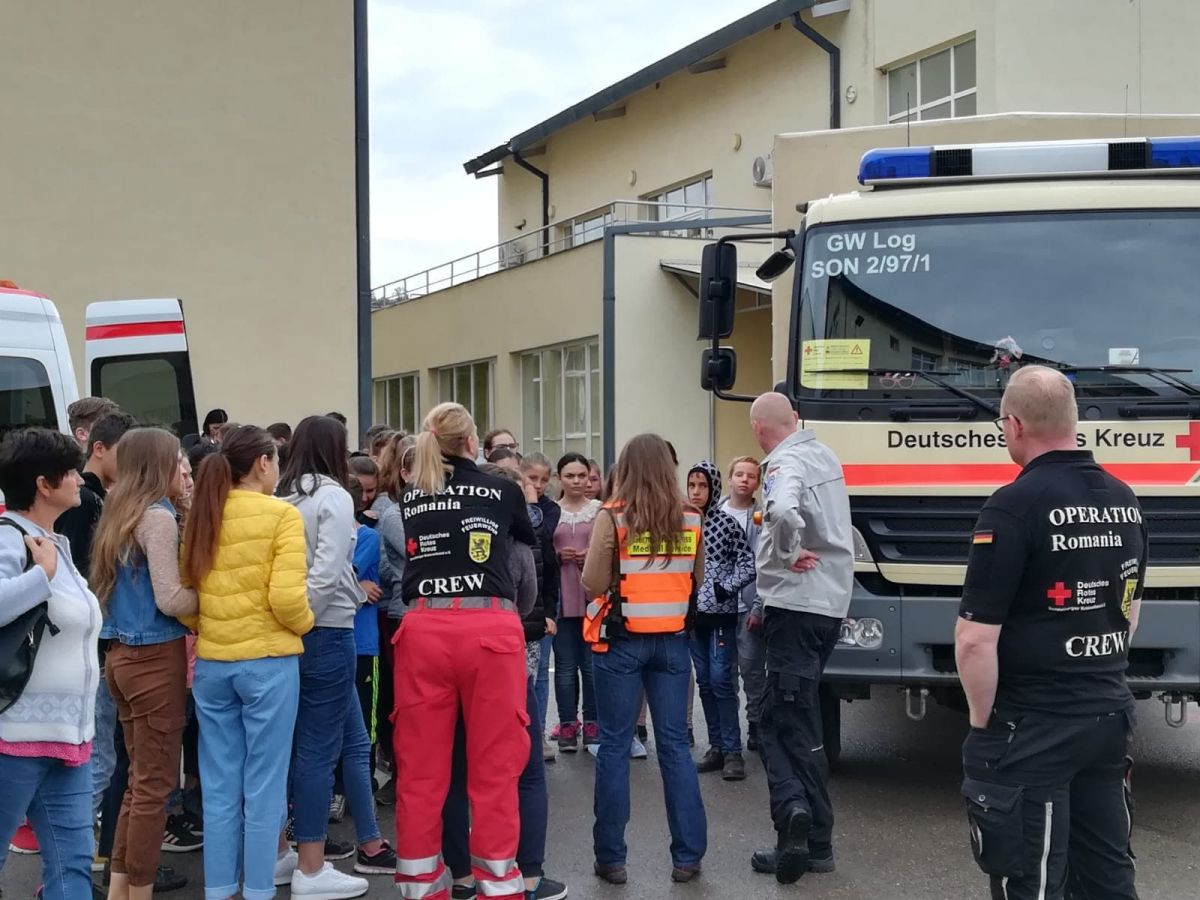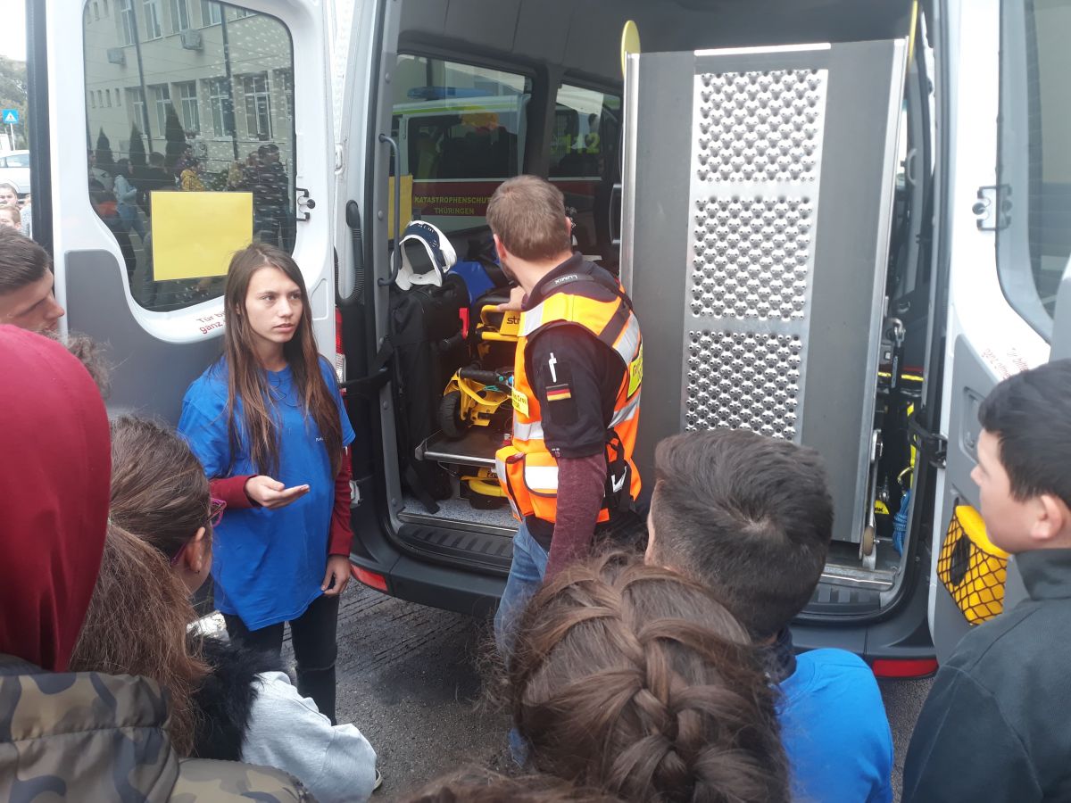 Acțiunea s-a desfășurat în curtea Liceului ”Demostene Botez” Trușești, lăsând posibilitatea tuturor elevilor curioși să observe autoutilitarele și să afle dacă există vreo diferență în modul de intervenție în caz de urgență în Germania.