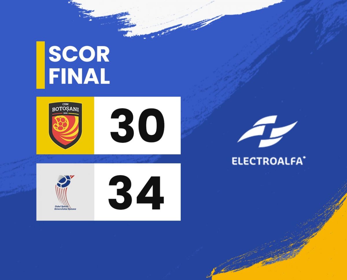 CSM Botoșani a pierdut meciul cu rivala din Suceava, sucevenii luându-și practic revanșa pentru înfrângerea usturătoare la 13 goluri din meciul tur.