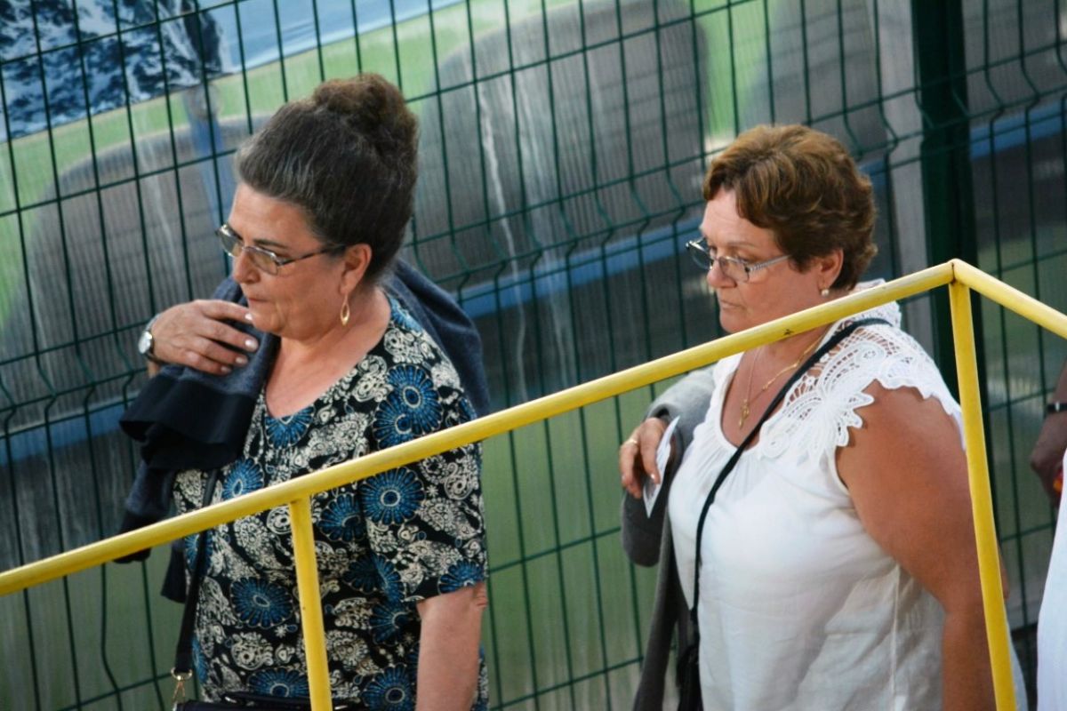 Din tribune, cu inima ruptă în două, urmăreşte meciul mama lor, Olga.