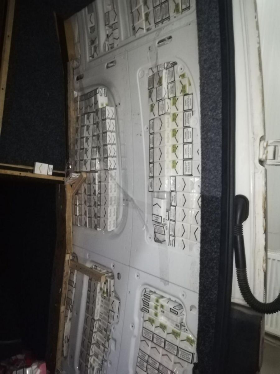În baza profilului de risc, polițiștii de frontieră au solicitat efectuarea unui control amănunţit asupra mijlocului de transport, ocazie cu care, echipa comună de control a descoperit ascunse în pereții laterali, în podea, plafon, banchete și în ușa culisantă a microbuzului, cantitatea totală de 177.500 țigarete, Kent și Marlboro, cu timbru de acciză R. Moldova.