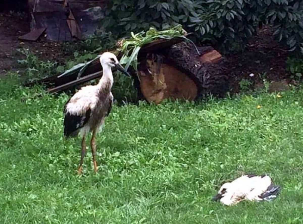 "Puii au fost îngrijiți de un localnic până când reprezentanții firmei Delgaz Grid au construit pe același stâlp un cuib artificial, adăugând și ce au recuperat din vechiul cuib. In acest timp puii, aflați în curtea localnicului, au fost hrăniți natural de berzele mature." se mai spune în postare.