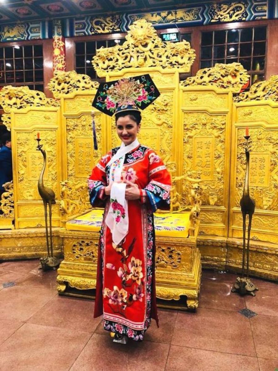 „În timpul unei vizite in China impreuna cu Petre, am avut minunata surpriză sa mi se propună sa îmbrac costumul împărătesei Chinei, costum ce are o vechime istorica de 2500 de ani. După ce l-am îmbrăcat - ajutată de un grup de superbe ajutoare - asa cum ma vedeti in fotografii, am cântat pentru organizatorii evenimentului",a povestit pentru B1, Silvia Chifiruc.