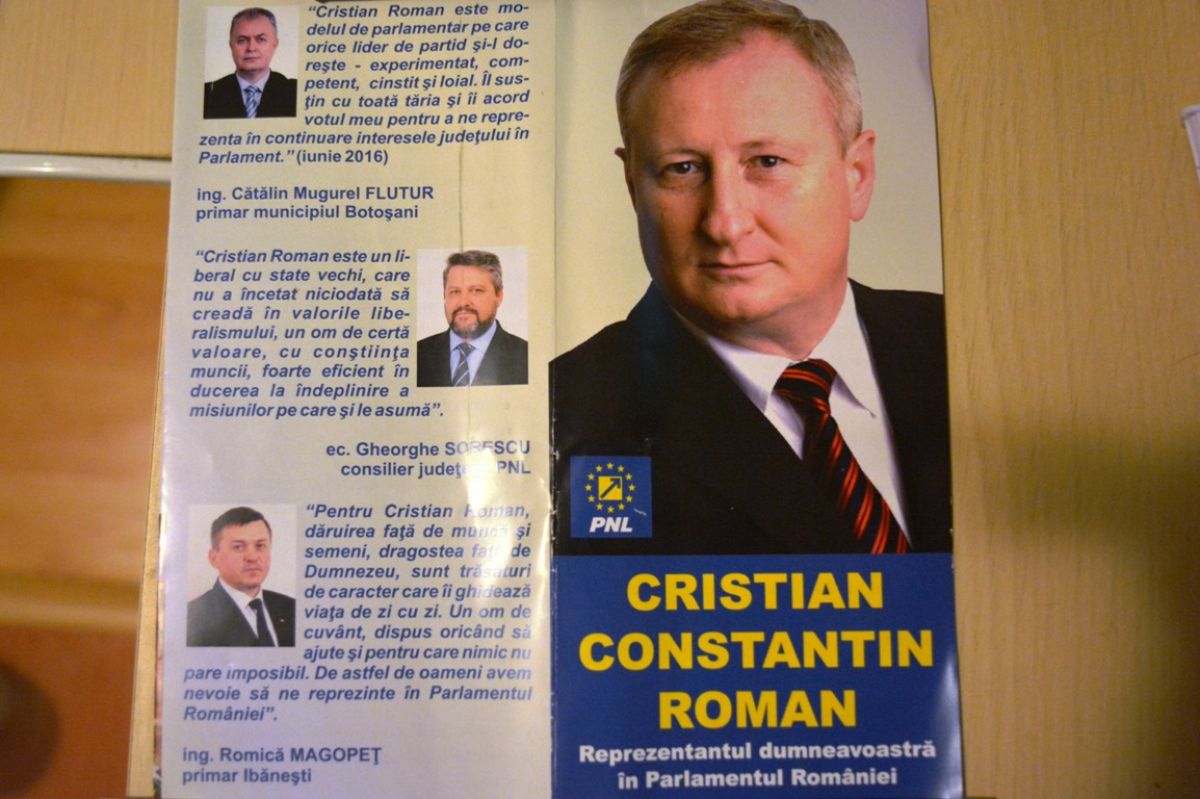 Una dintre nemulţumirile liberalilor înscrişi în cursa internă pentru obţinerea nominalizărilor la Parlament a privit pliantul pe care Cristian Roman l-a distribuit la Consiliul de Coordonare Judeţean (CCJ) de sâmbătă.