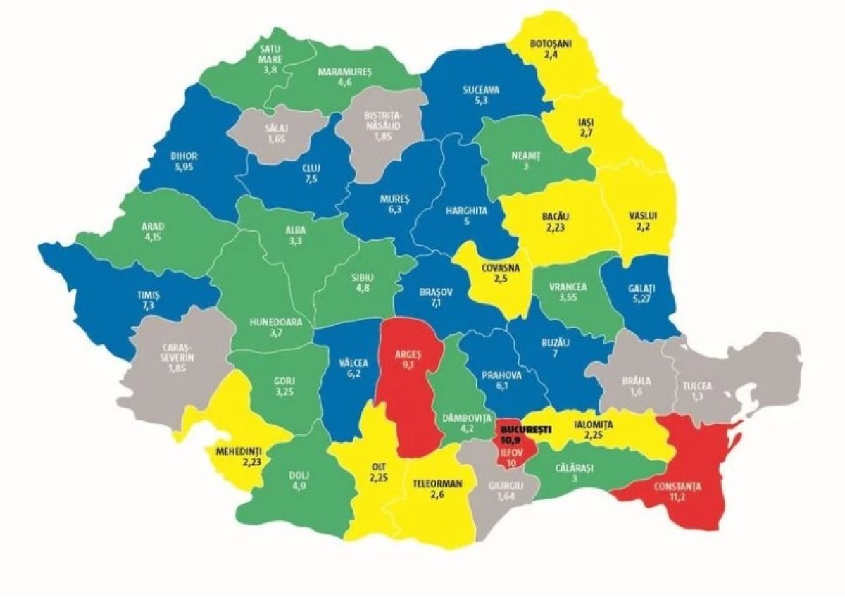 TOP 10 județe cu cea mai slabă medie lei/persoană