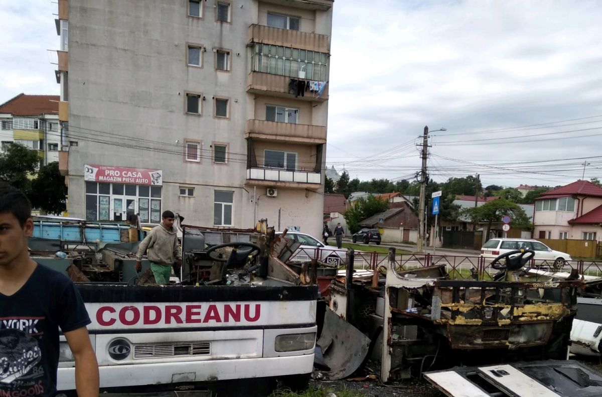 În urma verificării amplasamentului, s-a constatat ca mai multe persoane acționau cu aparatura specifică pentru dezmembrarea unor vehicule scoase din uz (trei autobuze).