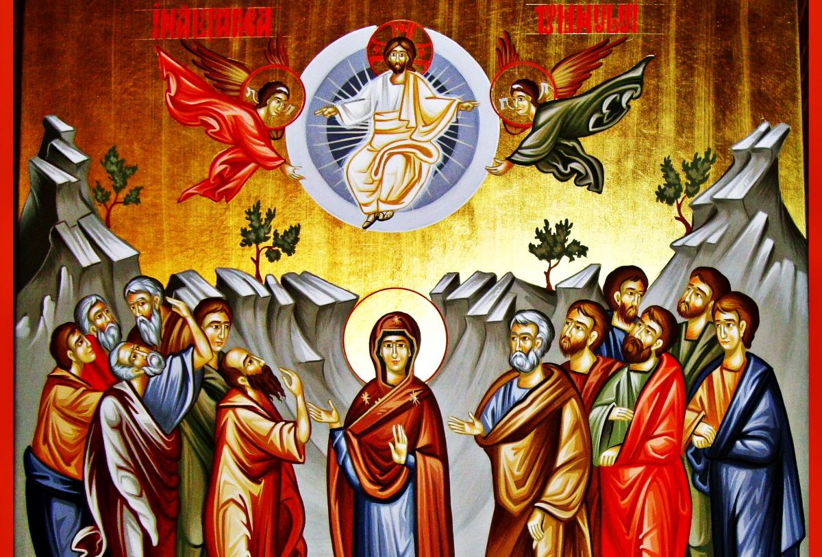 Mântuitorul i-a mângâiat pe toți și le-a spus că s-a apropiat clipa despărțirii de ei și a Înălțării Sale la Tatăl. Apoi, au pornit cu toții spre muntele Măslinilor, iar în fața oamenilor, în grădina Ghetsimani, Iisus a început să se înalțe spre Cer.