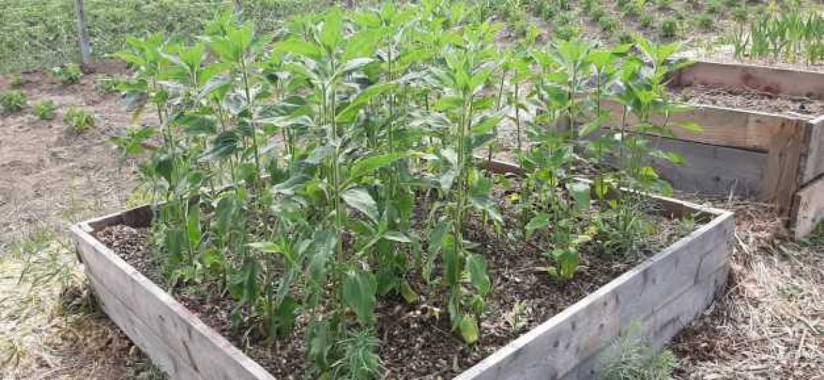 Pe „paturile” sale de compost Alexandru plantează de la pătrunjel şi până la cartofi.