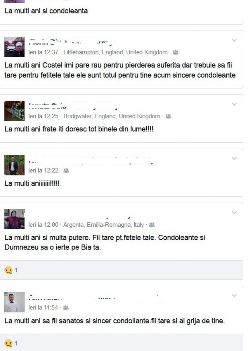 Mesaje de ”la mulți ani” amestecate cu condoleanțe pentru soție.