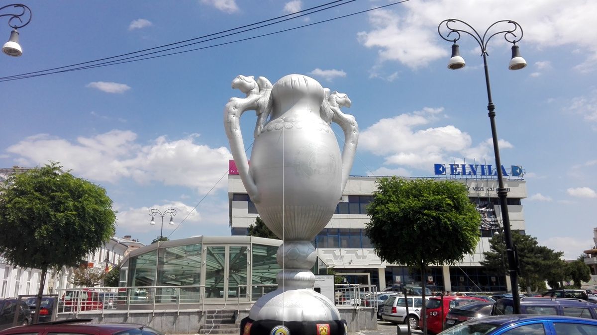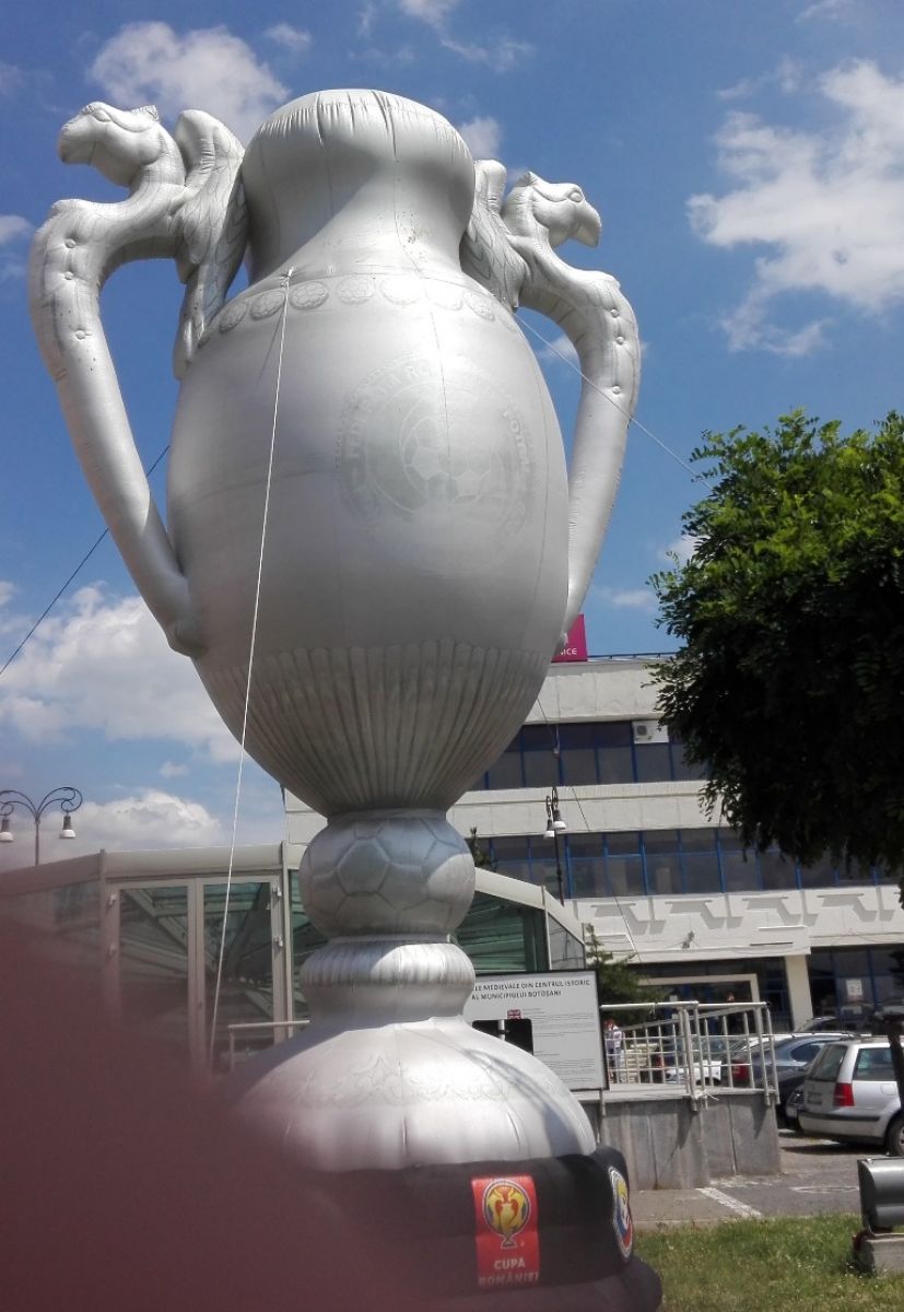 Campania de promovare a Supercupei României a demarat astăzi cu montarea mai multor cupe gonflabile în oraş. Una dintre acestea a fost amplasată în parcarea de la “Elvila”, iar alta pe Pietonalul Unirii.