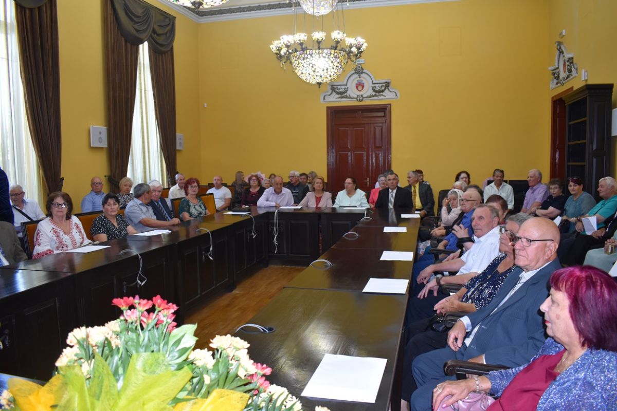 Cum la televizorul din sala Mihai Eminescu erau difuzate imagini de la precedentele festivități de acest tip, dar și cu pensionari din SUA, la final Cosmin Andrei le-a vorbit despre un sondaj făcut printre vârstnici.