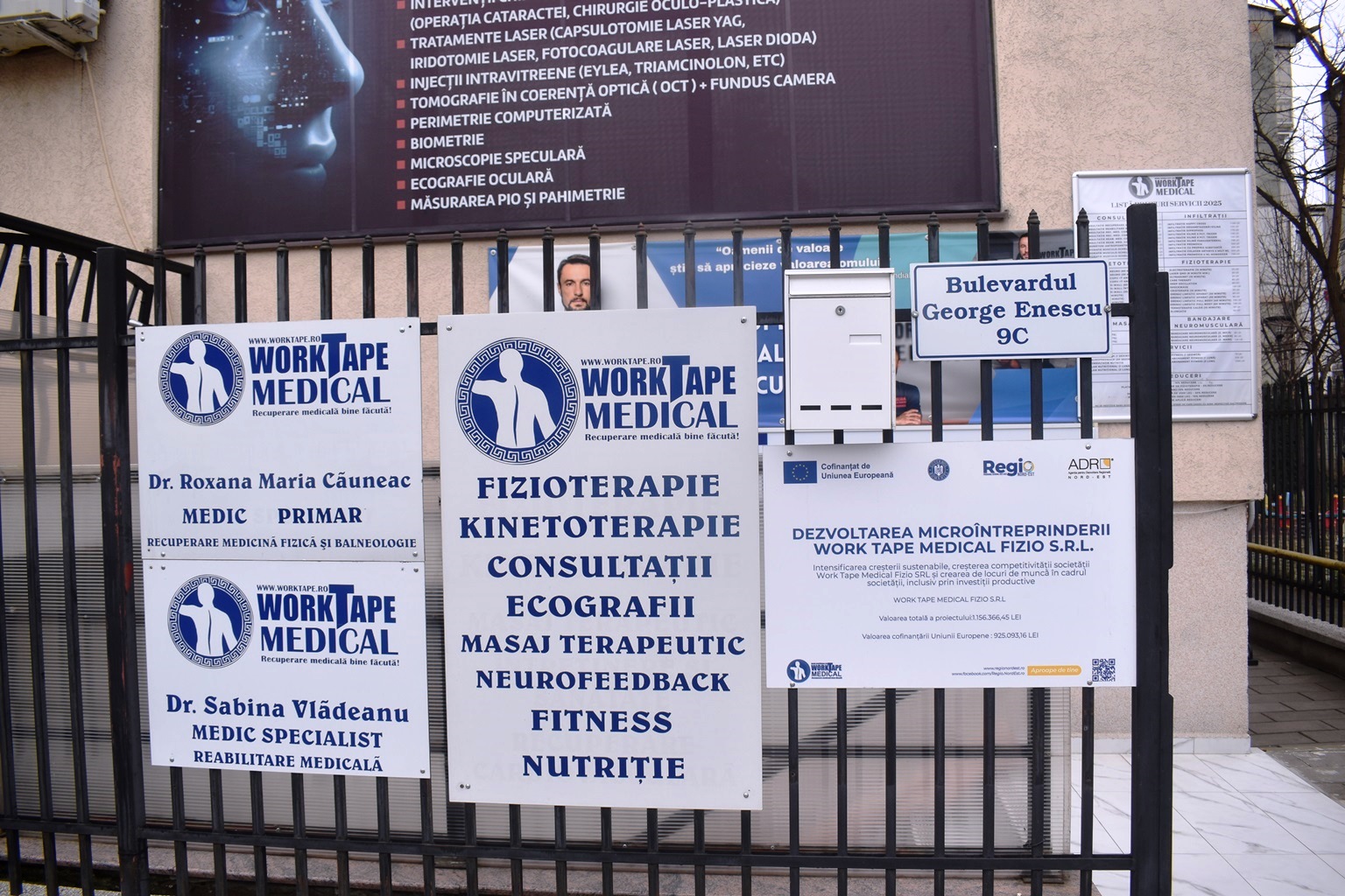 ”Intensificarea creșterii sustenabile, creșterea competitivității societății Work Tape Medical Fizio SRL și crearea de locuri de muncă în cadrul societății, inclusiv prin investiții productive” este denumirea proiectului în valoare totală de 1,15 milioane de lei, din care cofinanțarea s-a ridicat la 20% și care a permis achiziționarea mai multor echipamente de recuperare medicală.