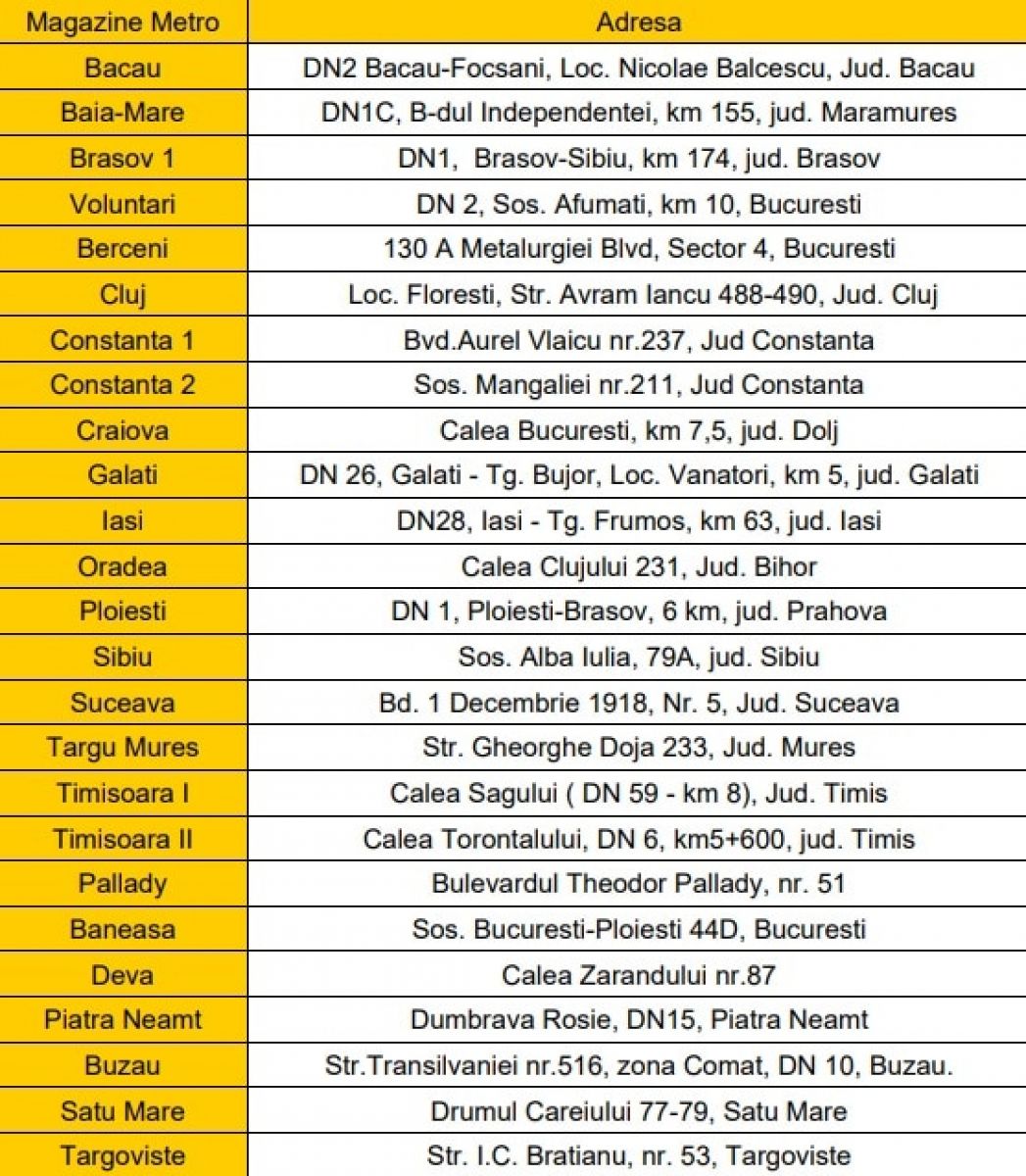 Mai jos, găsiți lista completă cu magazinele în care a fost comercializat produsul și în care poate fi returnat, pentru a primi contravaloarea.