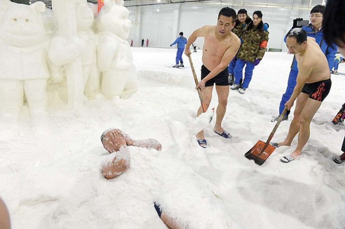 Te-ai speriat de temperaturile scăzute din această perioadă şi, când ieşi din casă, nu ştii cum să te înfofoleşti mai bine? Ia uite ce curajoşi sunt alţii din zone în care mercurul termometrelor ajunge chiar la -30 de grade Celsius. Fie pentru a-şi testa limitele, fie pentru a respecta anumite ritualuri aducătoare de noroc şi sănătate, oamenii au sfidat gerul iernii şi l-au înfruntat cu pieptul dezvelit. La propriu. În China există concursuri de „cine rezistă cel mai mult timp gol în zăpadă”, alţii stau cu orele îngropaţi în cuburi de gheaţă doar de amorul artei. Iar în Rusia, de Epifanie (sărbătoare creştină), chiar şi copiii s-au bălăcit în râul îngheţat, pe un ger de crăpau pietrele. Avem şi noi curajoşii noştri. Aşa că, de fiecare dată când mai ieşiţi afară cu fularul pe nas şi vă plângeţi de frig, gândiţi-vă la ei.