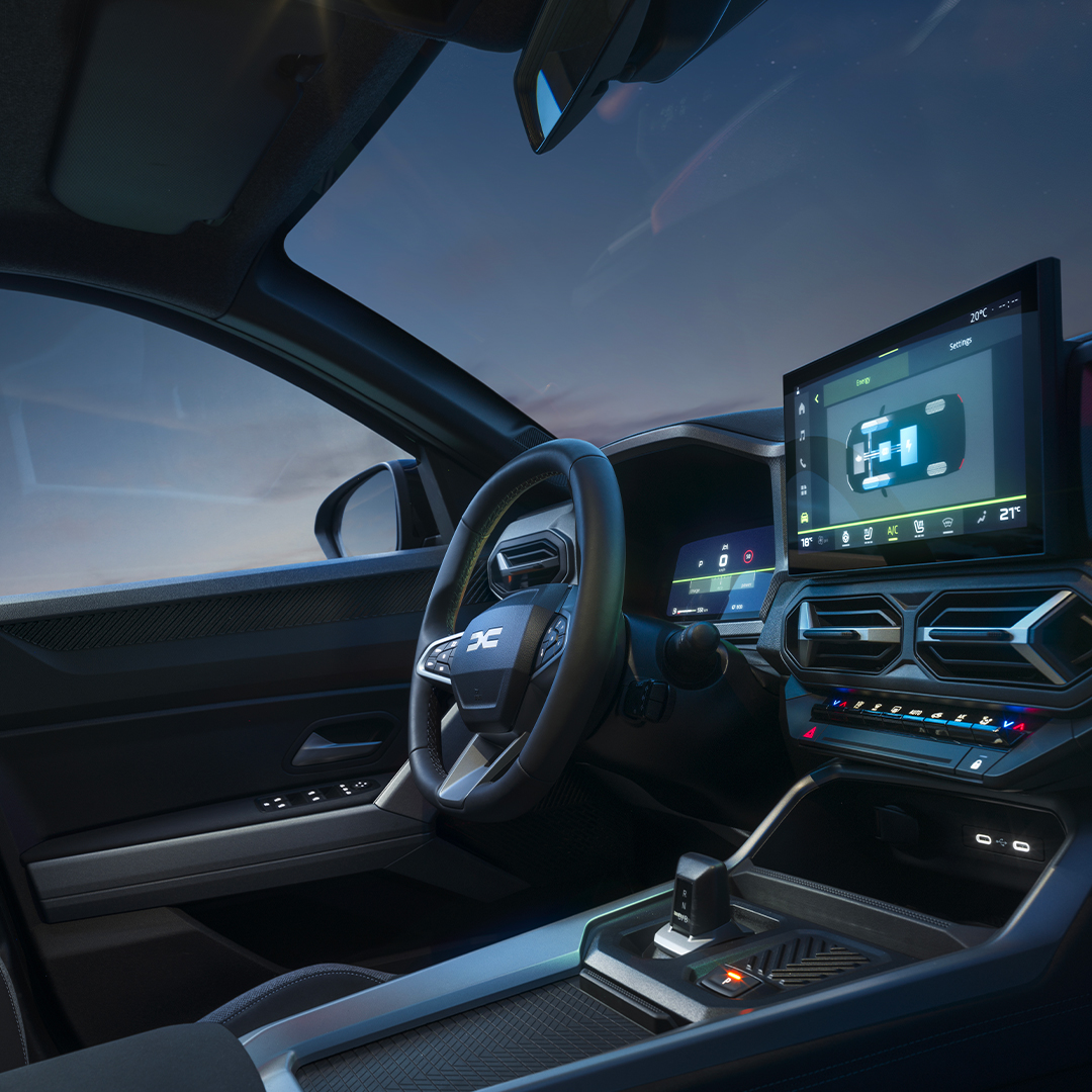 Complet electrificat, cu dotări precum ecran central de 10", tablou de bord digital, plafon panoramic și sistem audio 3D Arkamys, Bigster ridică esențialul la următorul nivel.