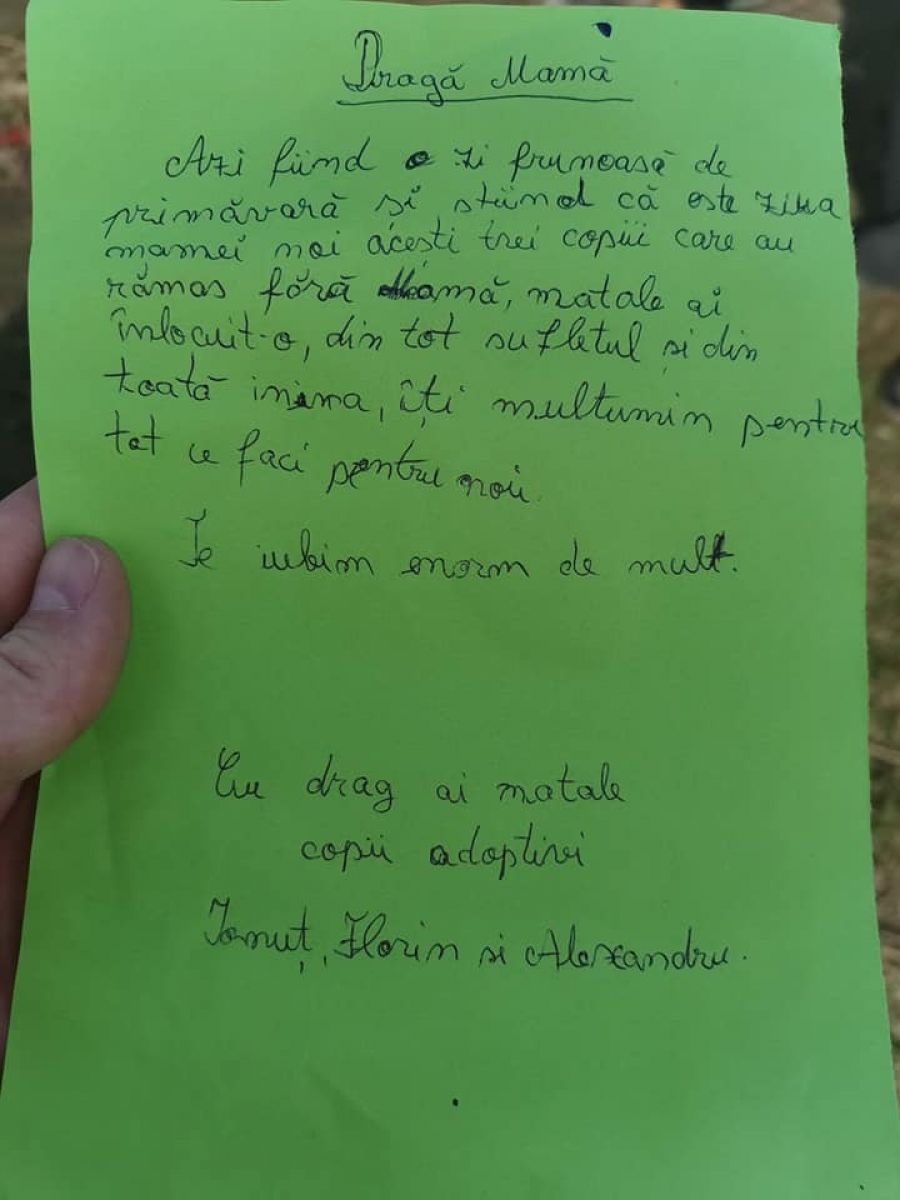 ”Rugămintea mea este ca dumneavoastră sa distribuiți în speranța că va dori cineva sa le dea o mana de ajutor. Cu ajutorul unor oamenii binevoitori IOAN a reușit sa capete o bucățică de pământ lângă aceasta căsuța și spera ca va reuși sa ridice o cămăruță pentru el și frații lui în cazul în care bunica nu va mai fi printre noi”,