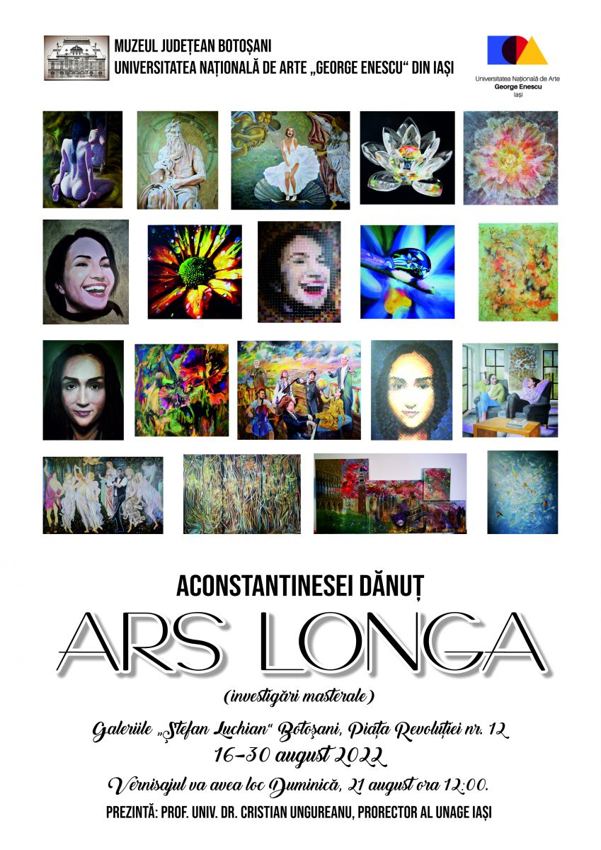 Muzeul Județean Botoșani găzduiește, în perioada 16 – 30 august 2022, în spațiul Galeriilor de Artă ”Ștefan Luchian" Botoșani, expoziția de artă vizuală ”Ars Longa" (investigări masterale), cu lucrări semnate de artistul Dănuț Aconstantinesei, eveniment organizat în parteneriat cu Universitatea de Arte ”George Enescu" Iași.