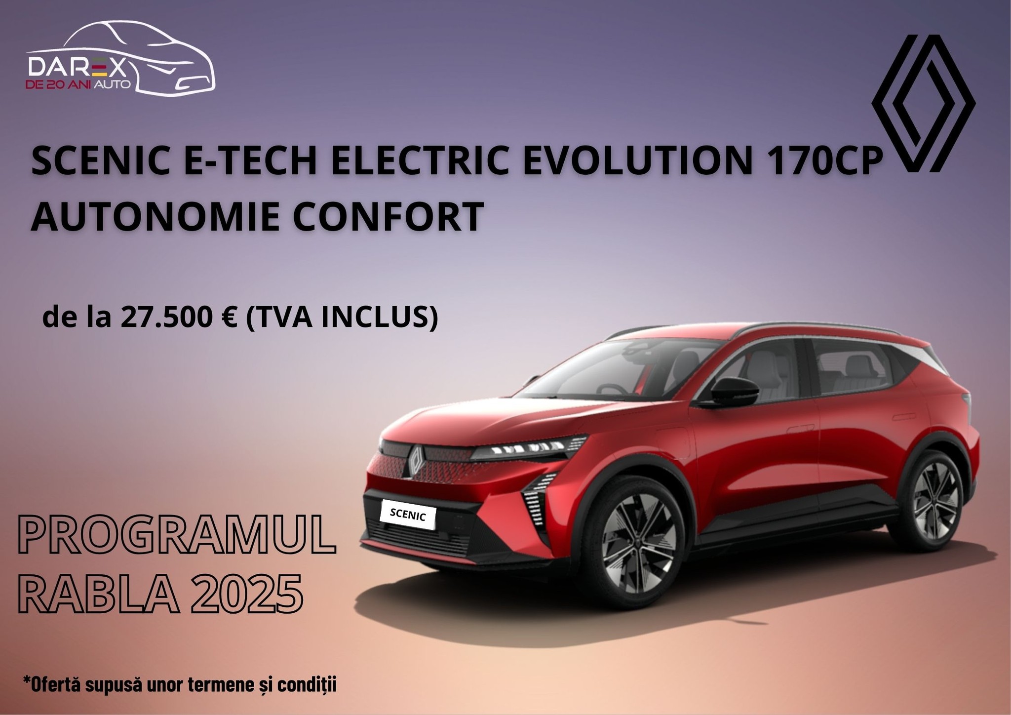 Cu această ocazie, compania Darex Auto, dealer autorizat Dacia – Renault – Nissan în județele Botoșani și Suceava, anunță reduceri consistente la modelele Renault preferate, inclusiv hibride sau electrice.