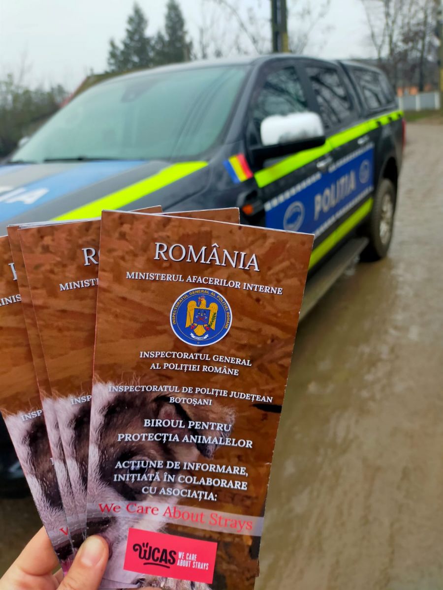 La data de 11 decembrie 2022, polițiștii Biroului pentru Protecția Animalelor, împreună cu voluntarii Asociației ”We Care About Strays” au desfășurat o acțiune, pe raza comunei Albești, pentru informarea și educarea deținătorilor de animale privind legislația incidentă protecției animalelor.