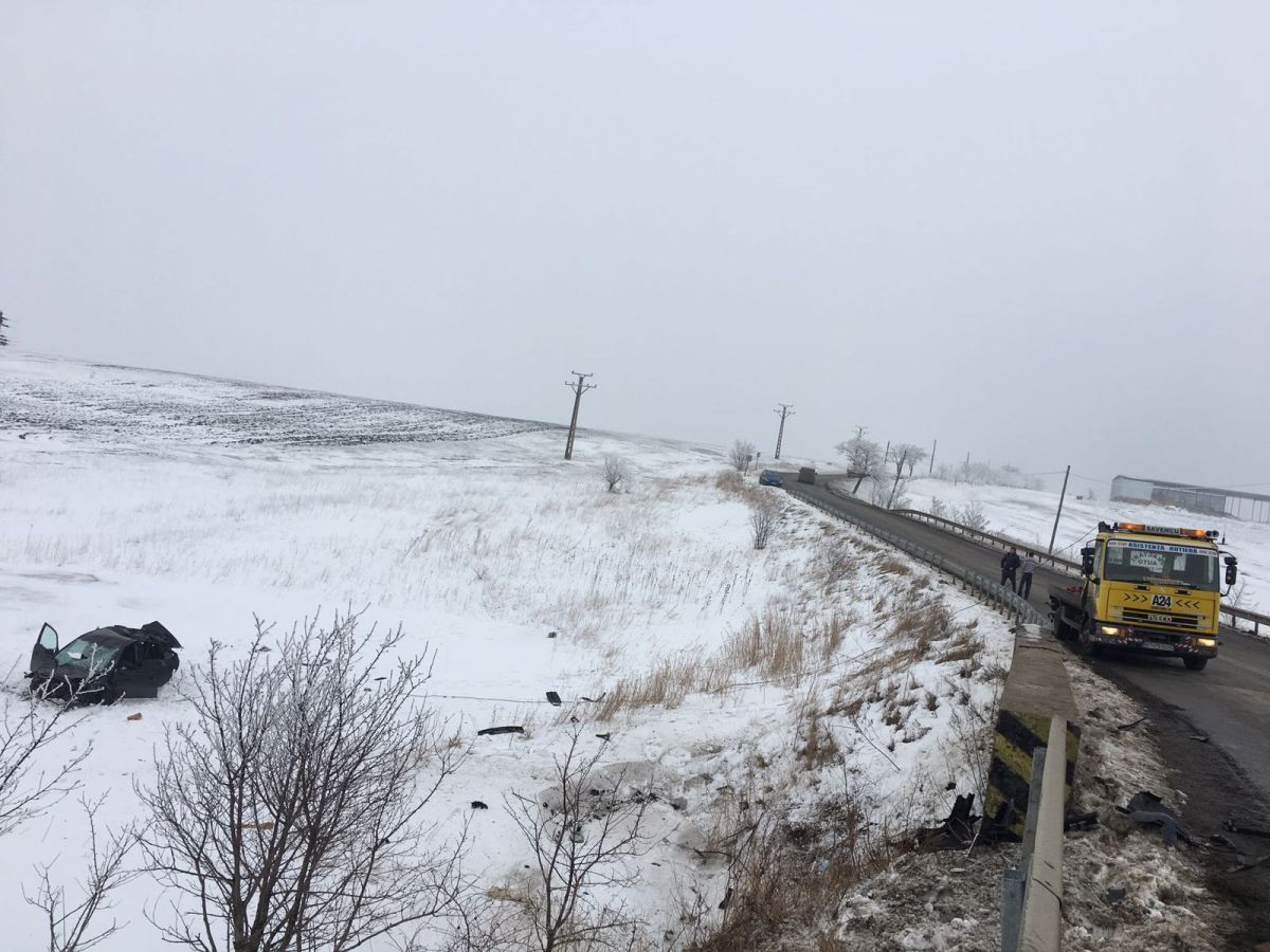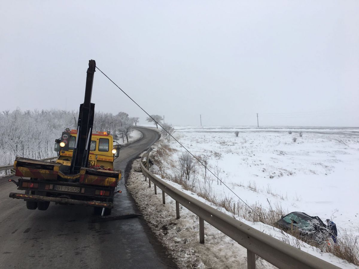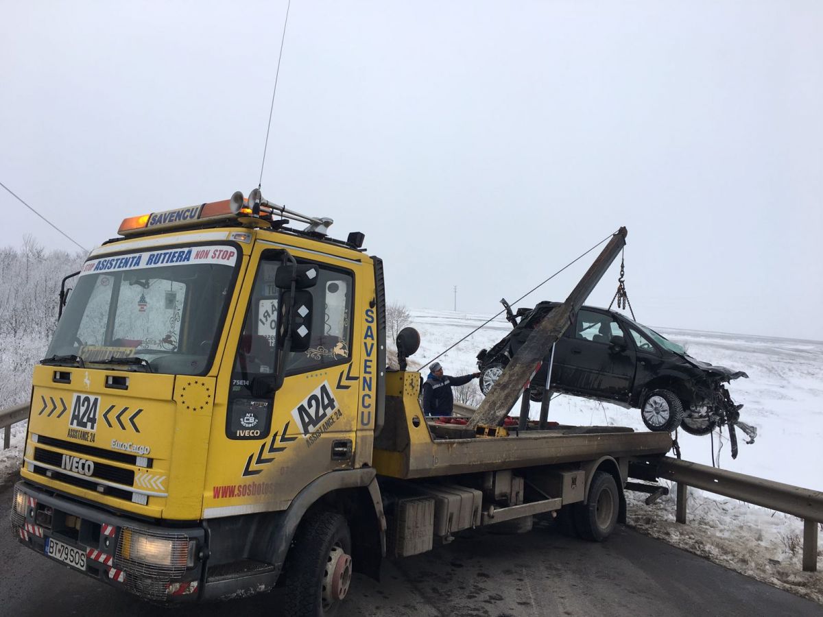 Echipa de intervenție de la SOS Botoșani a întâmpinat serioase dificultăți în tractarea automobilului, generate și de poziția mașinii, dar și de zăpadă.