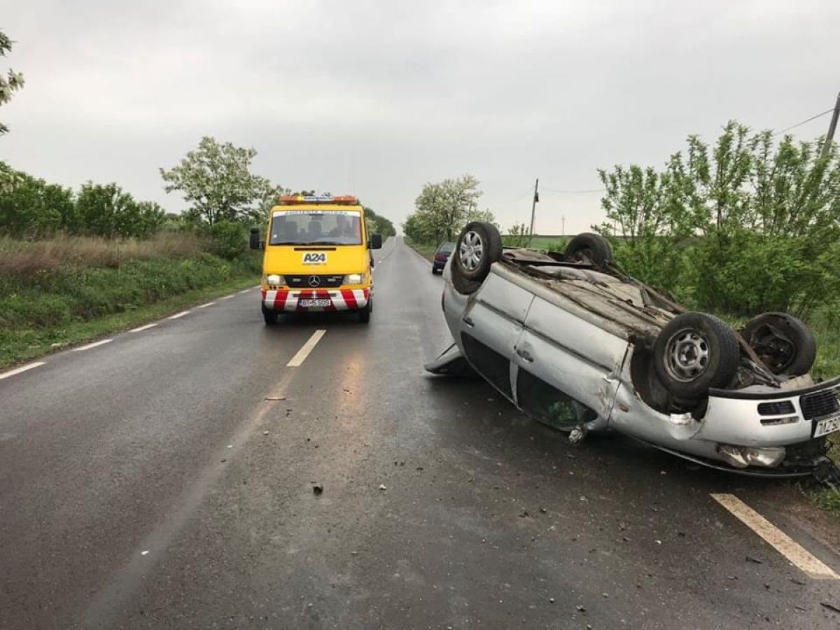 Este vorba despre un Volkswagen Polo care rula din municipiul reședință spre județ și care a fost scăpat de sub control de conducătoarea auto, posibil și din cauza carosabilului umed.