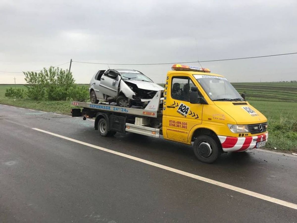A fost ridicată de un echipaj de la SOS Botoșani pe o platformă, după ce a fost readusă pe roți arătând că nu prea mai poate fi reparată, gradul de avariere fiind foarte ridicat.