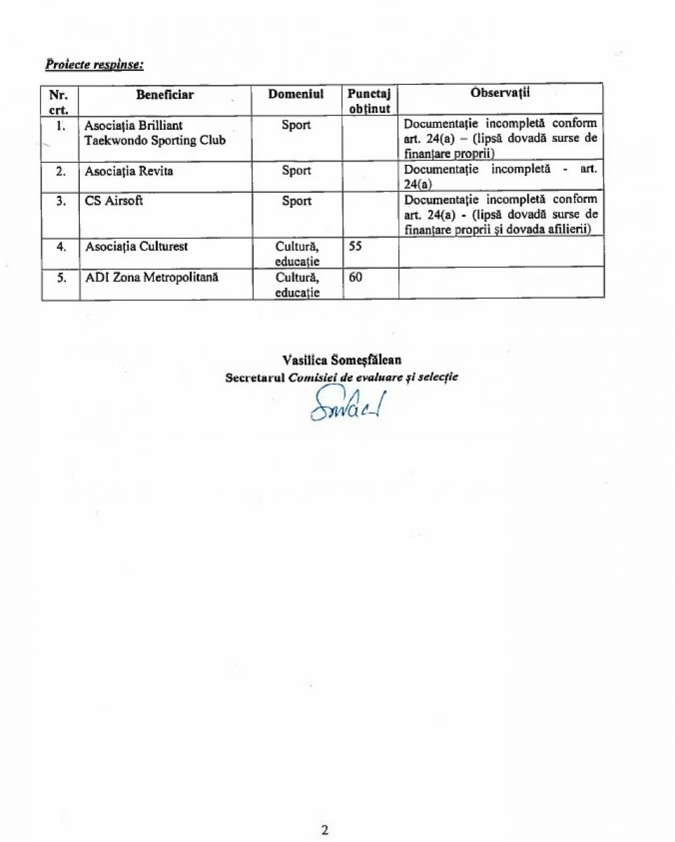 Alte cinci proiecte au fost respinse, printre acestea regăsindu-se şi Asociaţia de Dezvoltare Intercomunitară Zona Metropolitană, care nu a întrunit punctajul necesar.