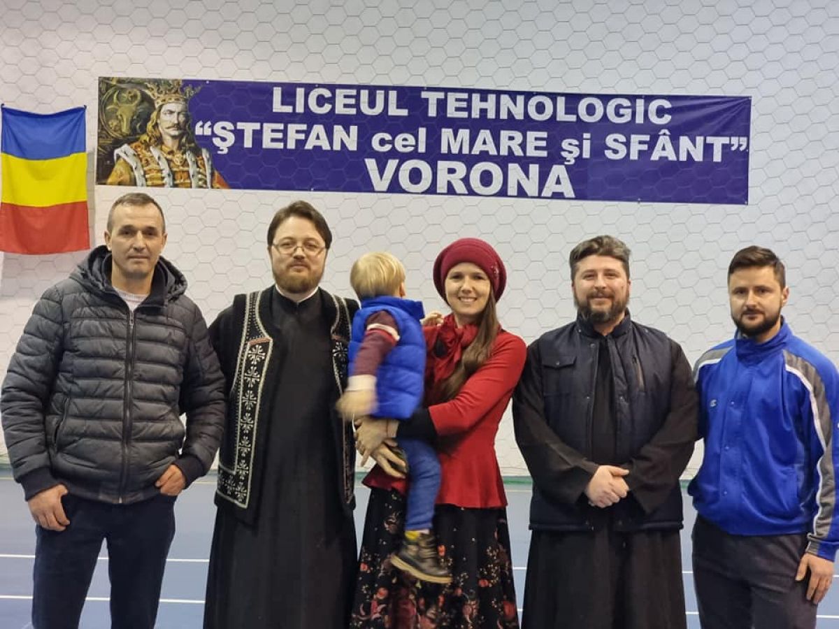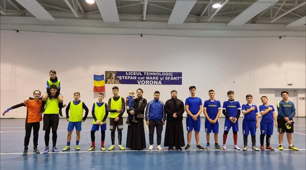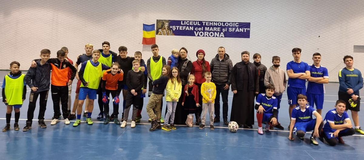 Apoi, au primit vizita copiilor, tinerilor, a dascălului și a părintelui paroh de la Parohia Pacea, din municipiul Botoșani, care au venit la sala de sport a Liceului din Vorona pentru un meci de fotbal amical.
