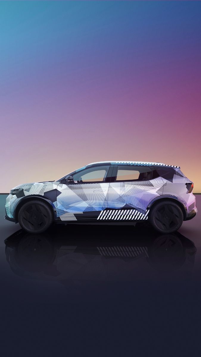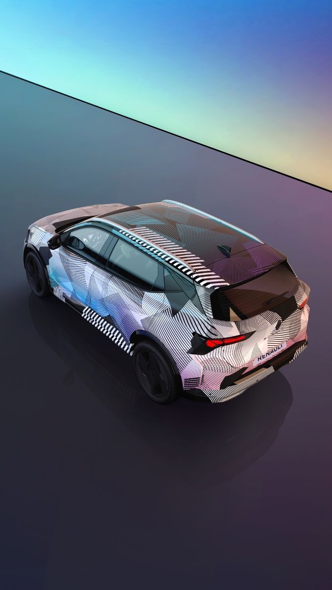 Fabricate la ElectriCity din Douai, vehiculele pre-serie prezintă un model de camuflaj special creat de Renault Design. Acesta constă într-un joc de linii și modele derivate din logo-ul iconic, care amintește de design-ul realizat anterior pentru camuflarea modelului Mégane E-Tech electric.