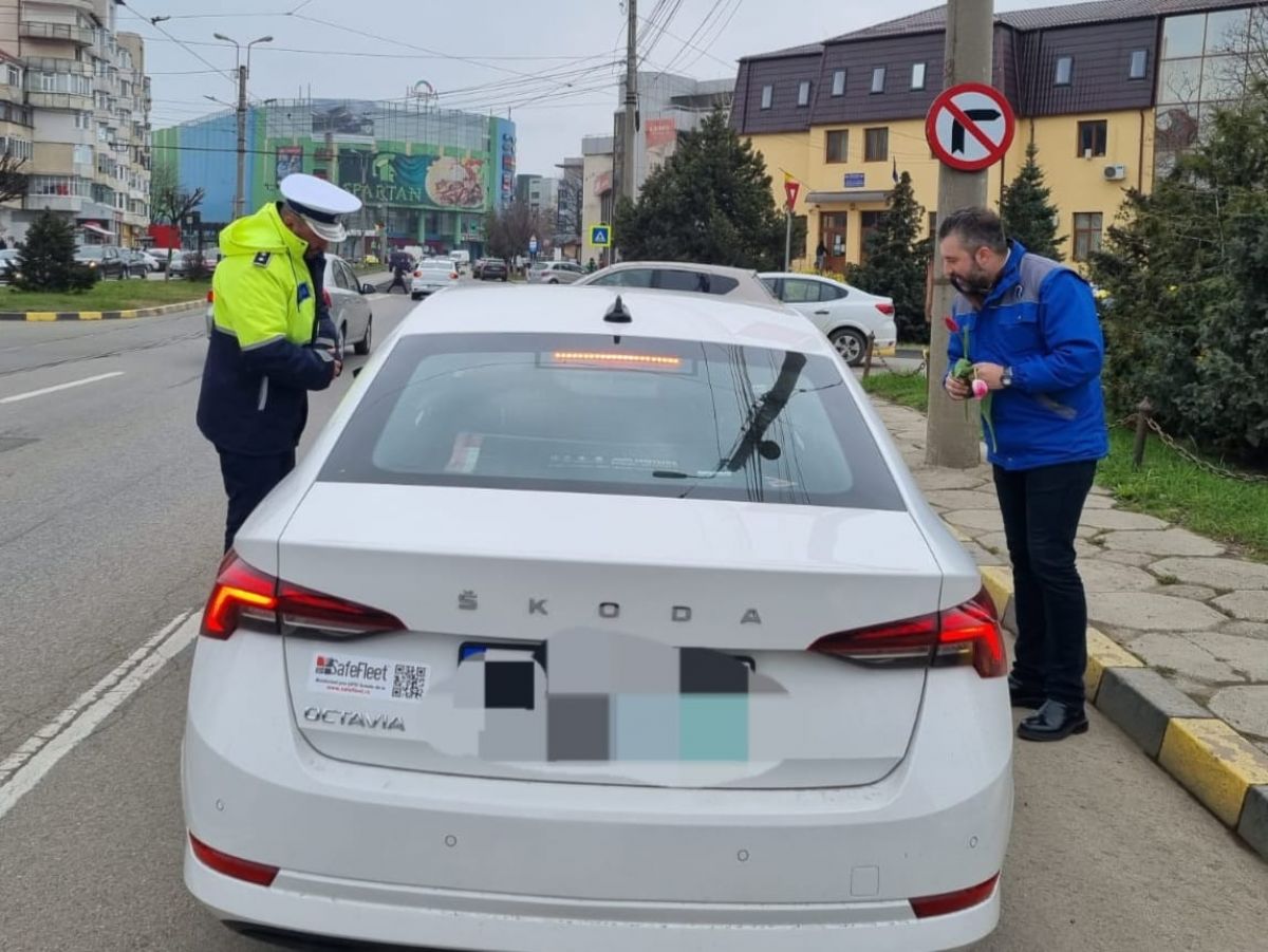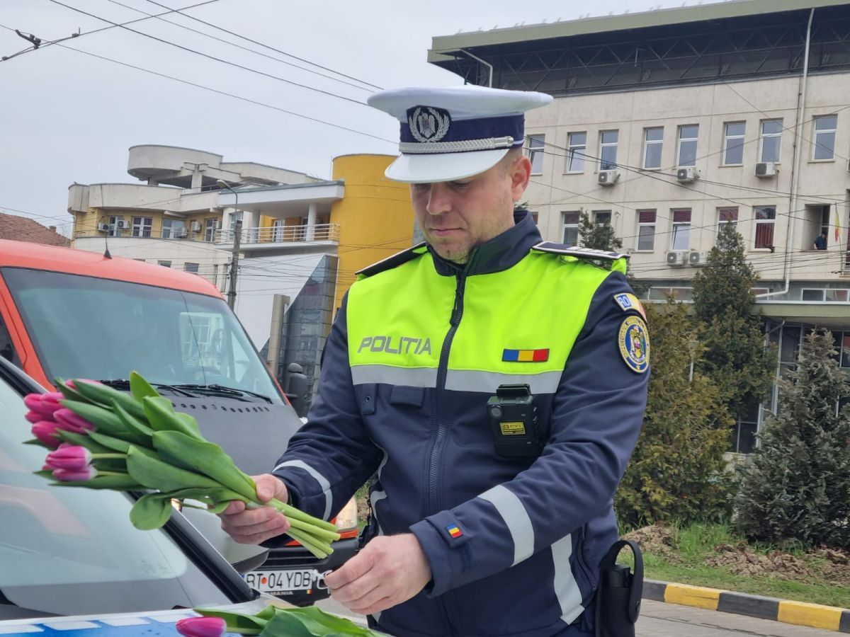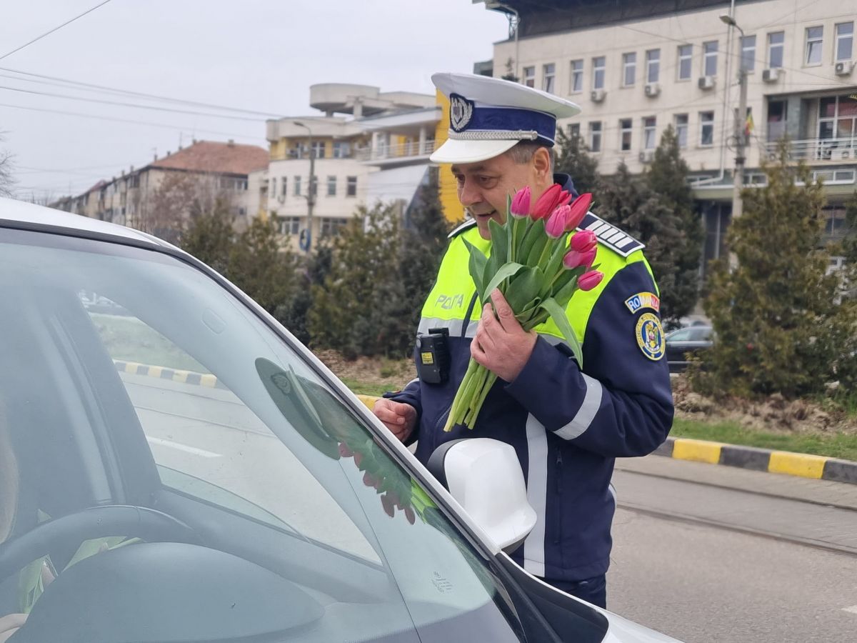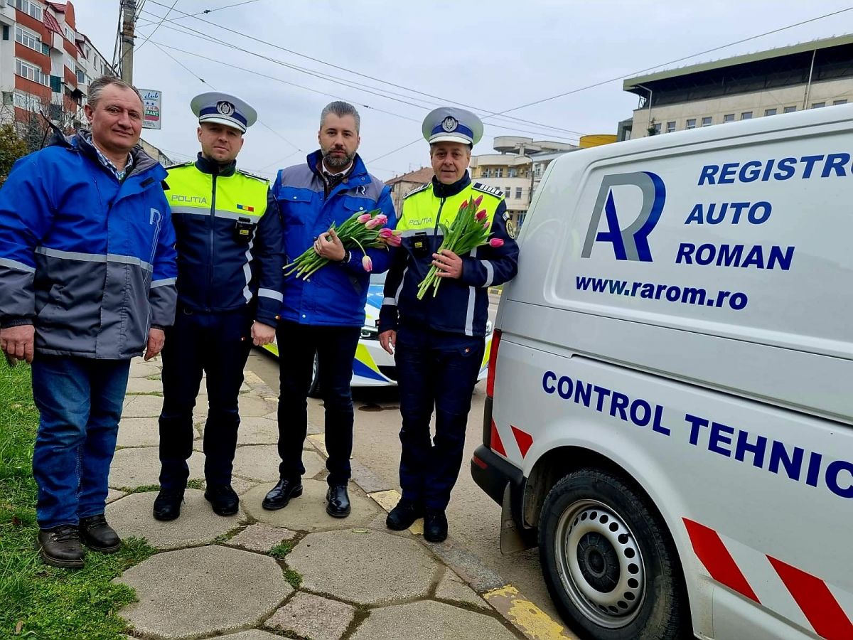 Și de 8 martie, doamnele și domnișoarele care s-au aflat în trafic au avut parte de o surpriză din partea polițiștilor rutieri și a reprezentanților Registrului Auto Român.