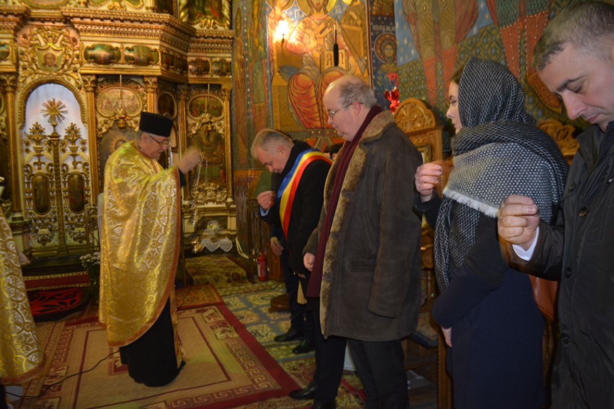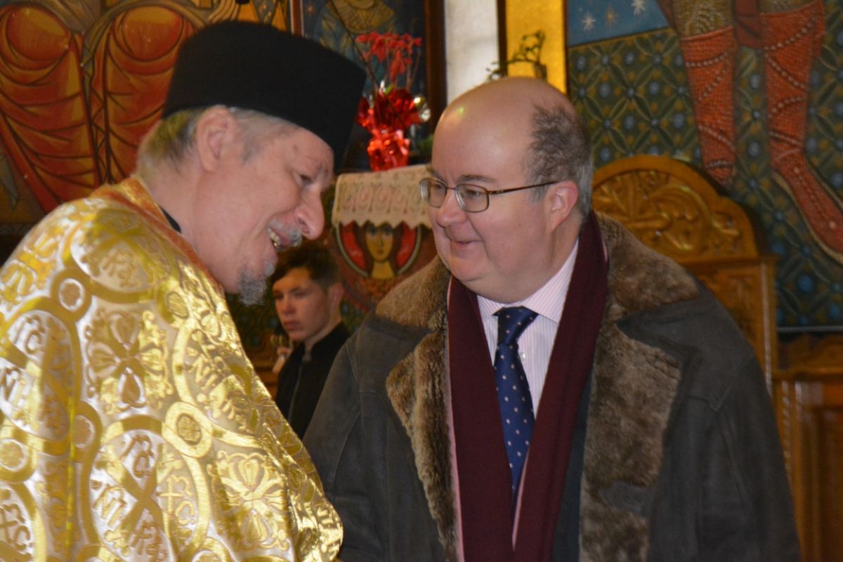 La Te Deum-ul săvârşit la Biserica Uspenia, lăcaşul de cult în care a fost botezat Mihai Eminescu, a participat şi ambasadorul Marii Britanii în România. Excelenţa Sa Paul Brummell s-a deplasat în Centrul Vechi împreună cu primarul Cătălin Flutur, alături de care a şi asistat la slujbă.