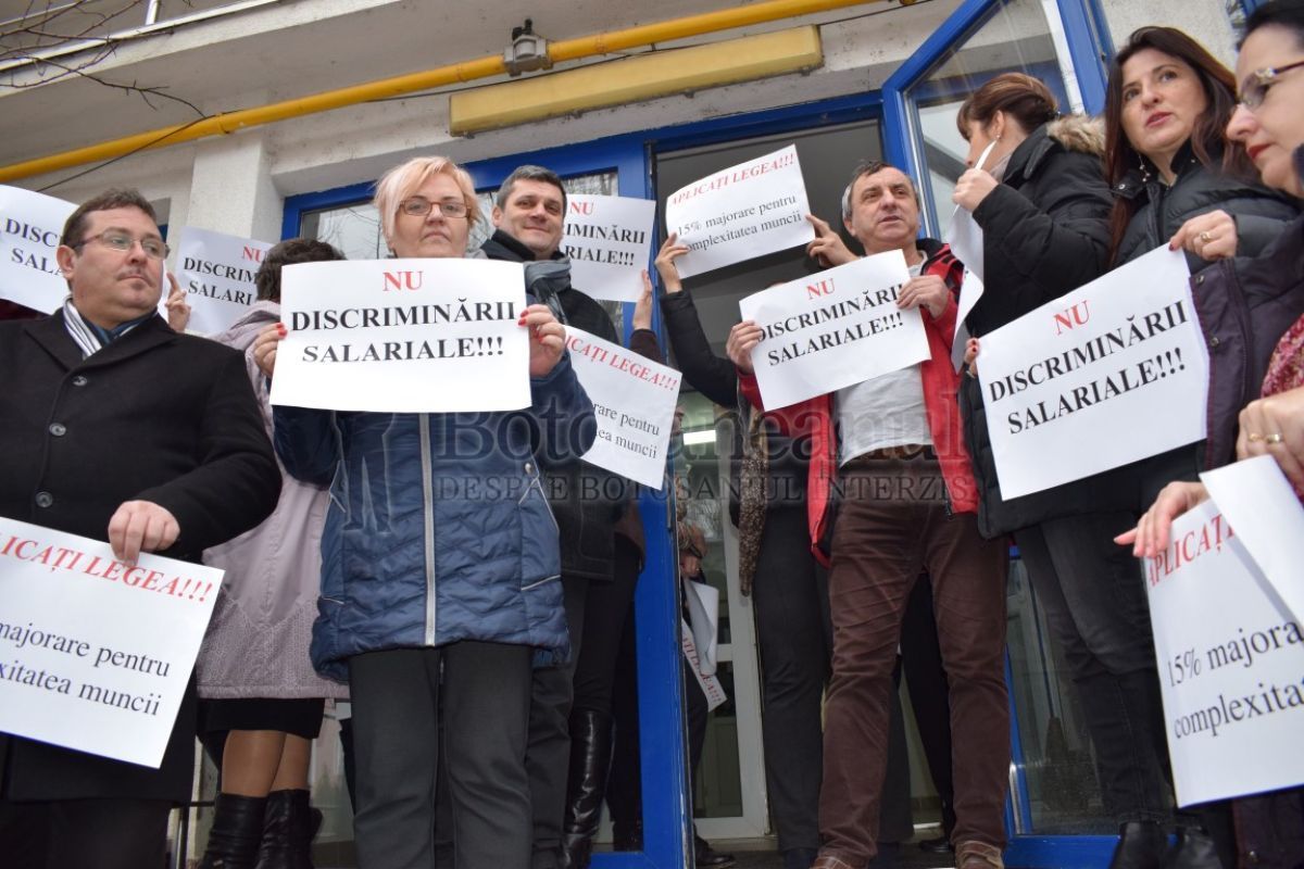 „Protestăm împotriva practicii de neacordare a drepturilor salariale prevăzute de legile în vigoare și de eșalonare în 5 ani a drepturilor recunoscute de instanțe. Nu se mai poate suporta situația de acum! Munca nu o prestăm eșalonat, mâncare, impozitele și facturile nu le plătim eșalonat”,