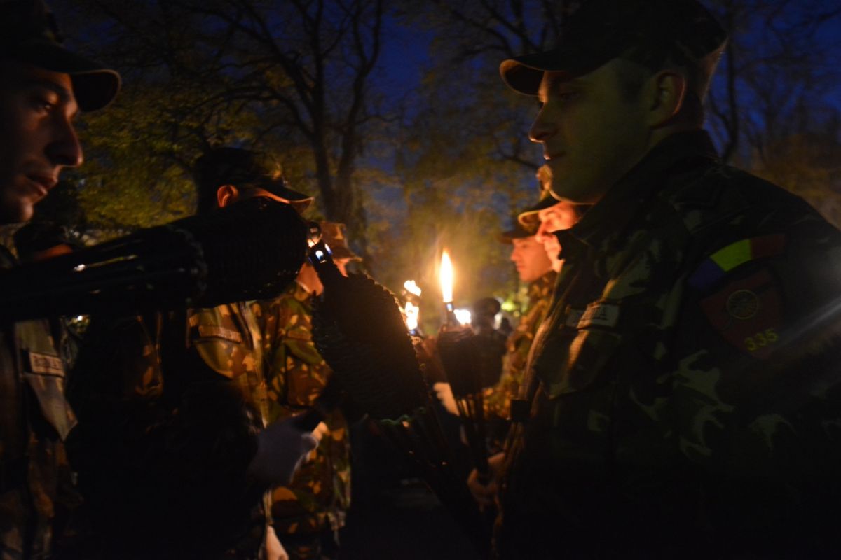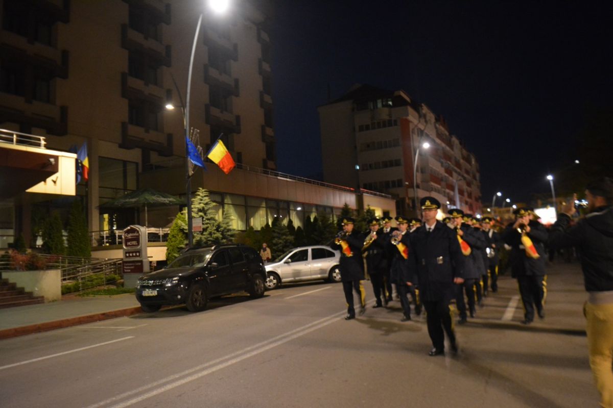 Peste 50 de ostaşi s-au strâns lângă Cercul Militar şi având în frunte o fanfară adusă specială de la Iaşi, la 19:00 au plecat în marş prin centrul urbei. Aceasta după o ceremonie de aprindere a torţelor.