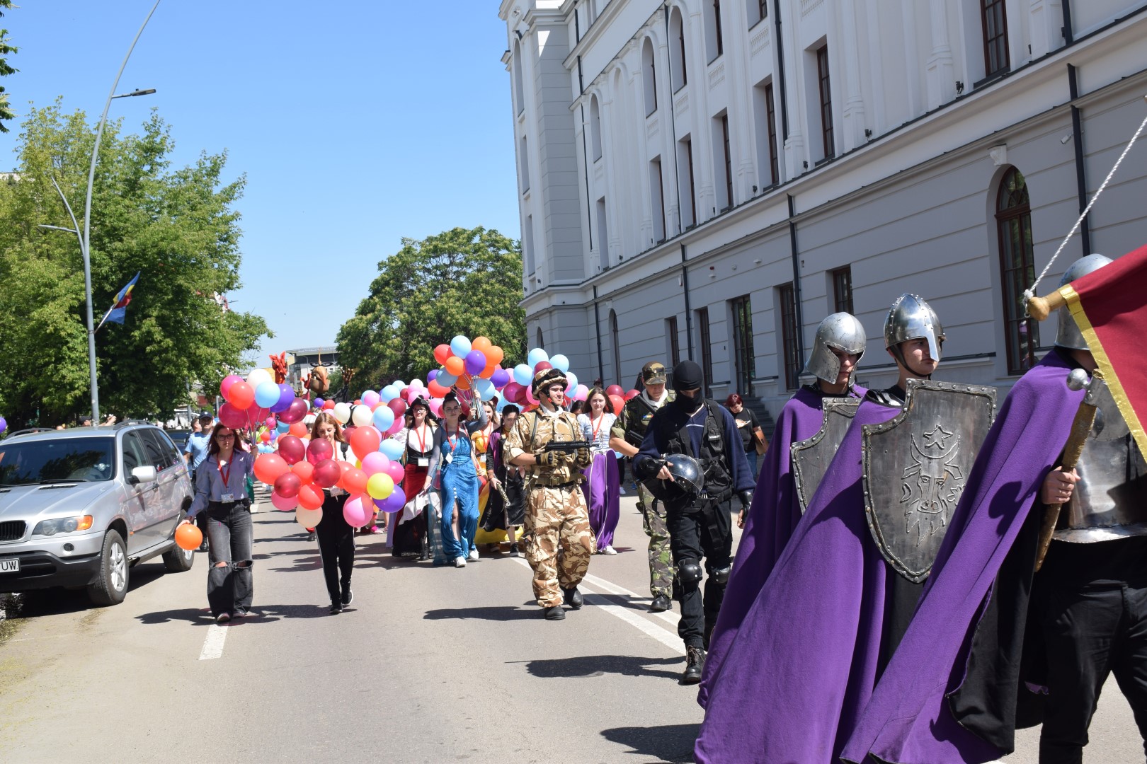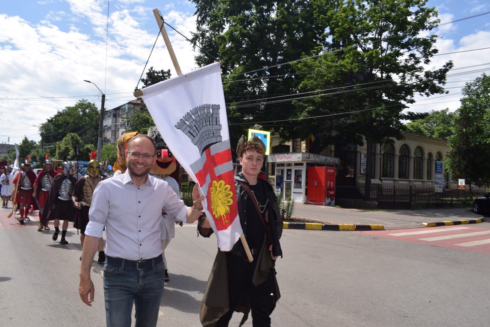 Edilul orașului s-a aflat în fruntea paradei, fiind însoțit de directorul Teatrului pentru Copii și Tineret Marius Rogojinschi, care a coordonat acțiunea.