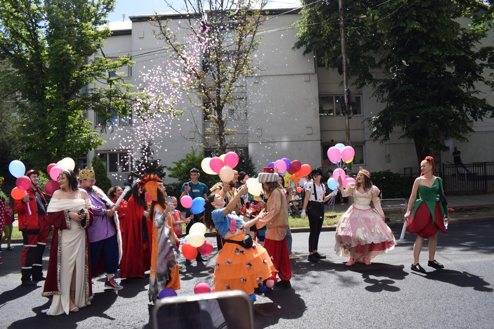 Mickey Mouse, Mica Sirenă, Cenușăreasa, cavaleri, prinți, balauri și alte personaje s-au așezat în rând și au pornit pe străzi.