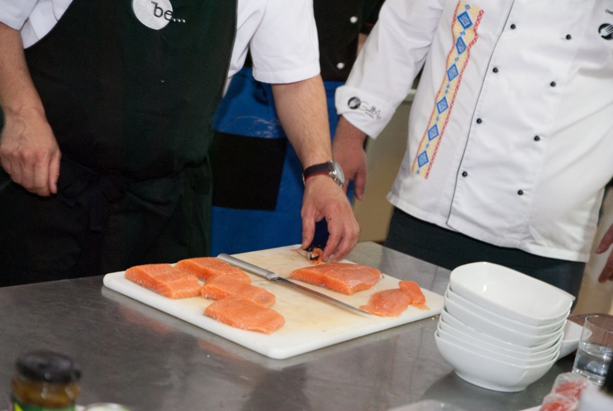 Şi ca să vadă toată lumea ce poate ieşi din combinarea patiseriei cu lactatele şi… pescăria, a fost adus Chef Nico Lontras, care a făcut o demonstraţie ce a fost transmisă live din bucătăria Cabanei Stejarul pe un ecran montat în restaurant.