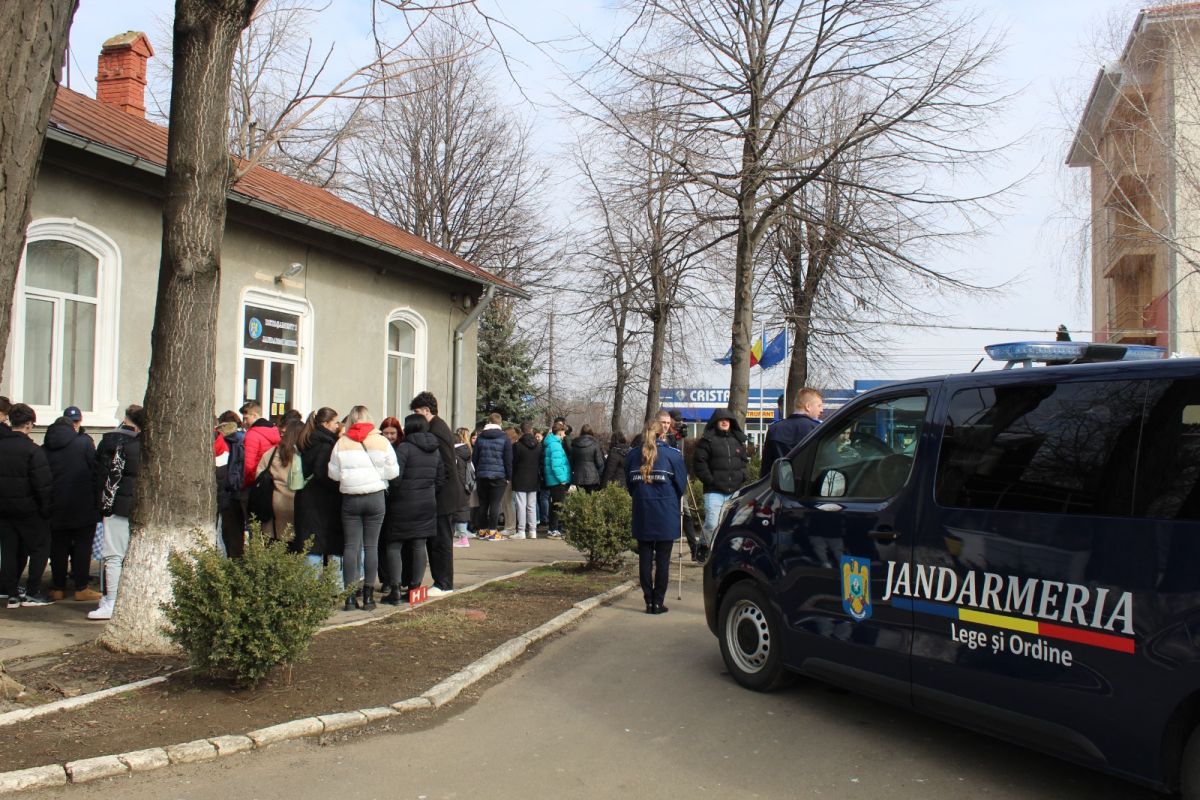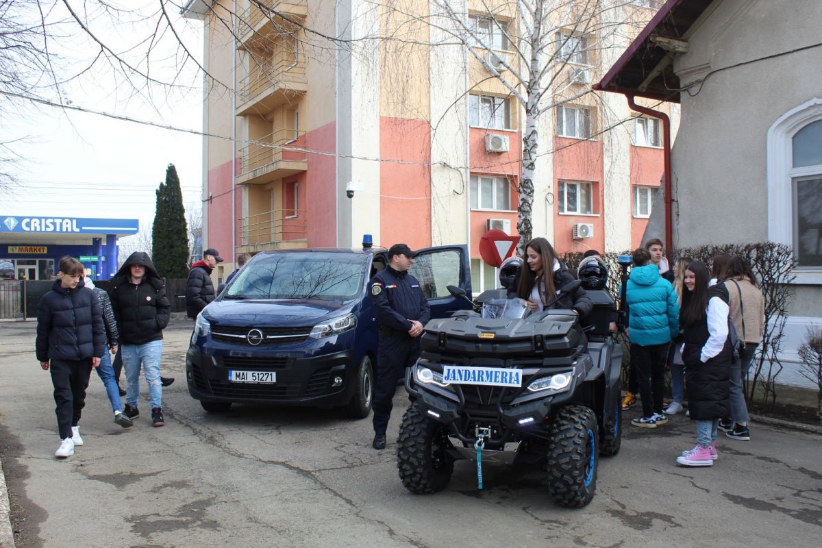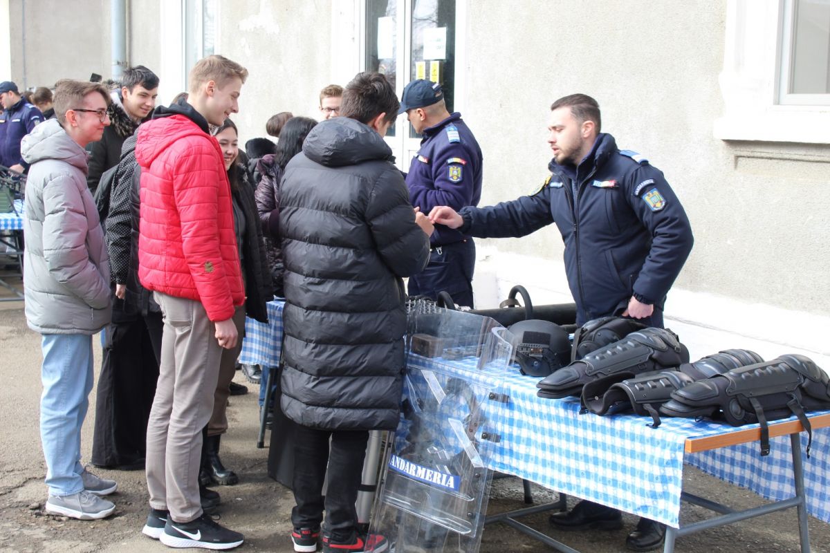 Activitatea s-a desfășurat în această dimineață, în cadrul programului național ,,Școala Altfel", elevii având prilejul să discute cu jandarmii despre aspecte de interes pentru ei, precum prevenirea faptelor antisociale, cyberbullying-ul sau oportunitatea urmării unei cariere militare în Jandarmeria Română.