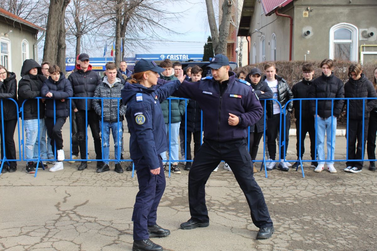 Trei studenți ai Academiei de Poliție,,Alexandru Ioan Cuza" București și doi elevi de la Școala Militară de Subofițeri Jandarmi Fălticeni le-au explicat tinerilor ,,laurieni" ce i-a motivat pe ei să se înscrie la examenele de admitere, ce avantaje poate oferi serviciul în slujba legii și cum se desfășoară cursurile în instituțiile de învățământ militar care școlarizează personal pentru nevoile Ministerului Afacerilor Interne.