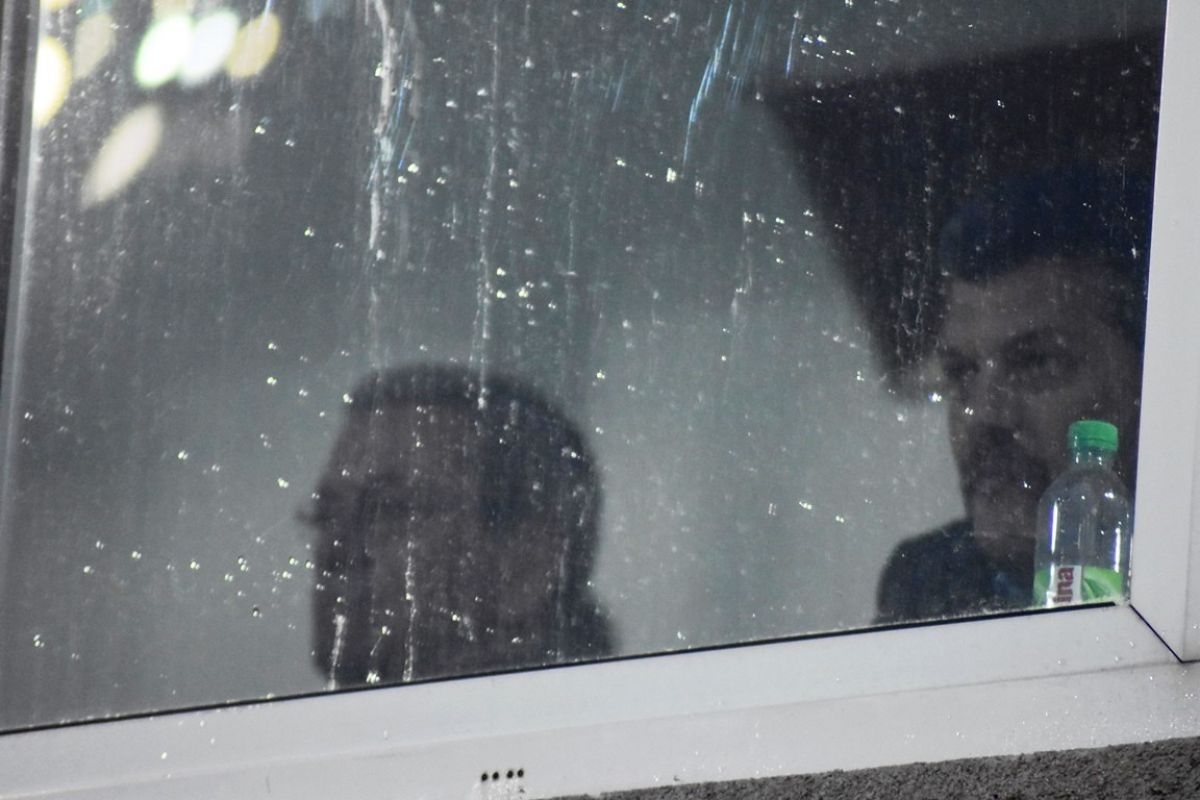 Oficialii dar și suporterii oaspeților s-au ticsit în două loje și s-au manifestat zgomotos pe tot parcursul meciului, de la țipete și înjurături la urale și încurajări.