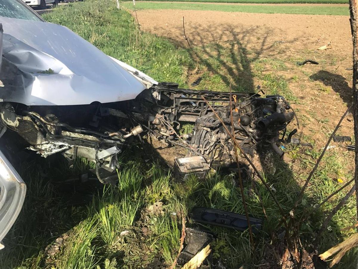 În urma impactului, autoturismul condus de tânărul de 27 de ani a derapat, a părăsit partea carosabilă şi a distrus un stâlp de telefonie, oprindu-se pe un teren agricol.