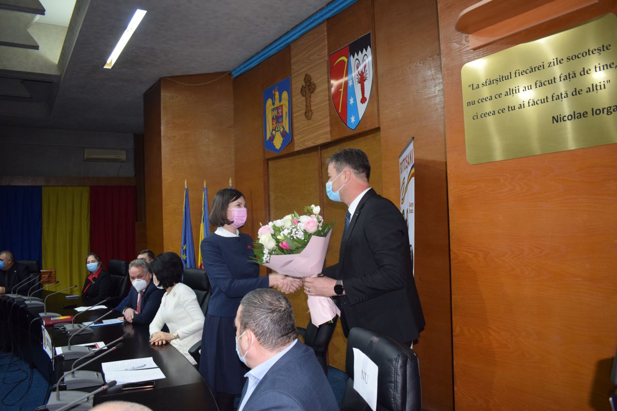 După ce și-a terminat discursul, Dan Șlincu i-a dăruit Paulei Berențan un buchet de flori.