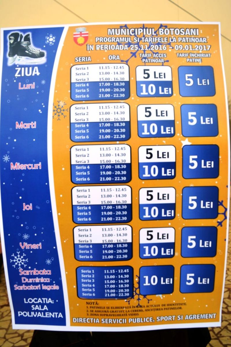 „Aşteptăm doritorii de mişcare în aer liber în număr cât mai mare, oferim acelaşi condiţii ca în anii precedenţi: să se schimbe în holul Sălii Polivalente, la cald, cu toalete, lucruri care pentru unii sunt mai greu de acceptat, că noi dorim să oferim condiţii civilizate cetăţenilor municipiului Botoşani”,