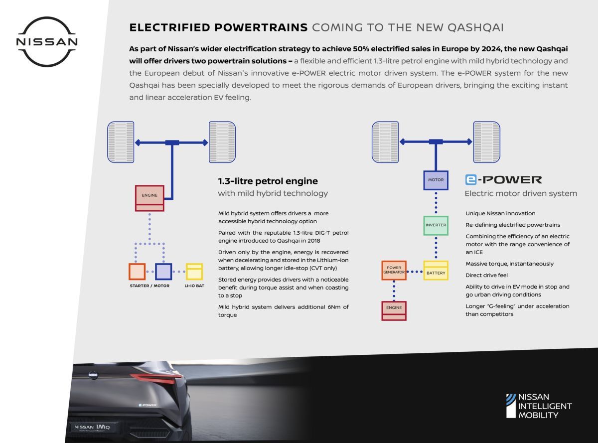 (P) Mult așteptatul Nissan Qashqai în versiune electrificată oferă o combinație fără compromis între performanța dinamică, un tren de rulare rafinat și motorizări cu un consum redus de combustibil. Noutatea principală este că va introduce în gamă, alături de versiunea pe benzină 1.3 DiG-T echipată cu tehnologie de tip mild-hybrid și tehnologia e-POWER, un sistem de propulsie inovator.