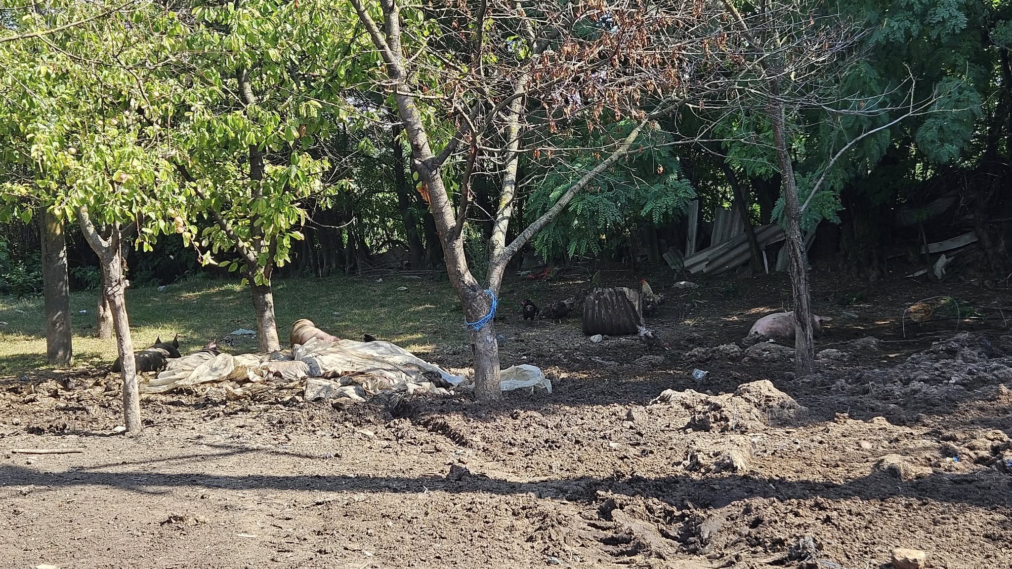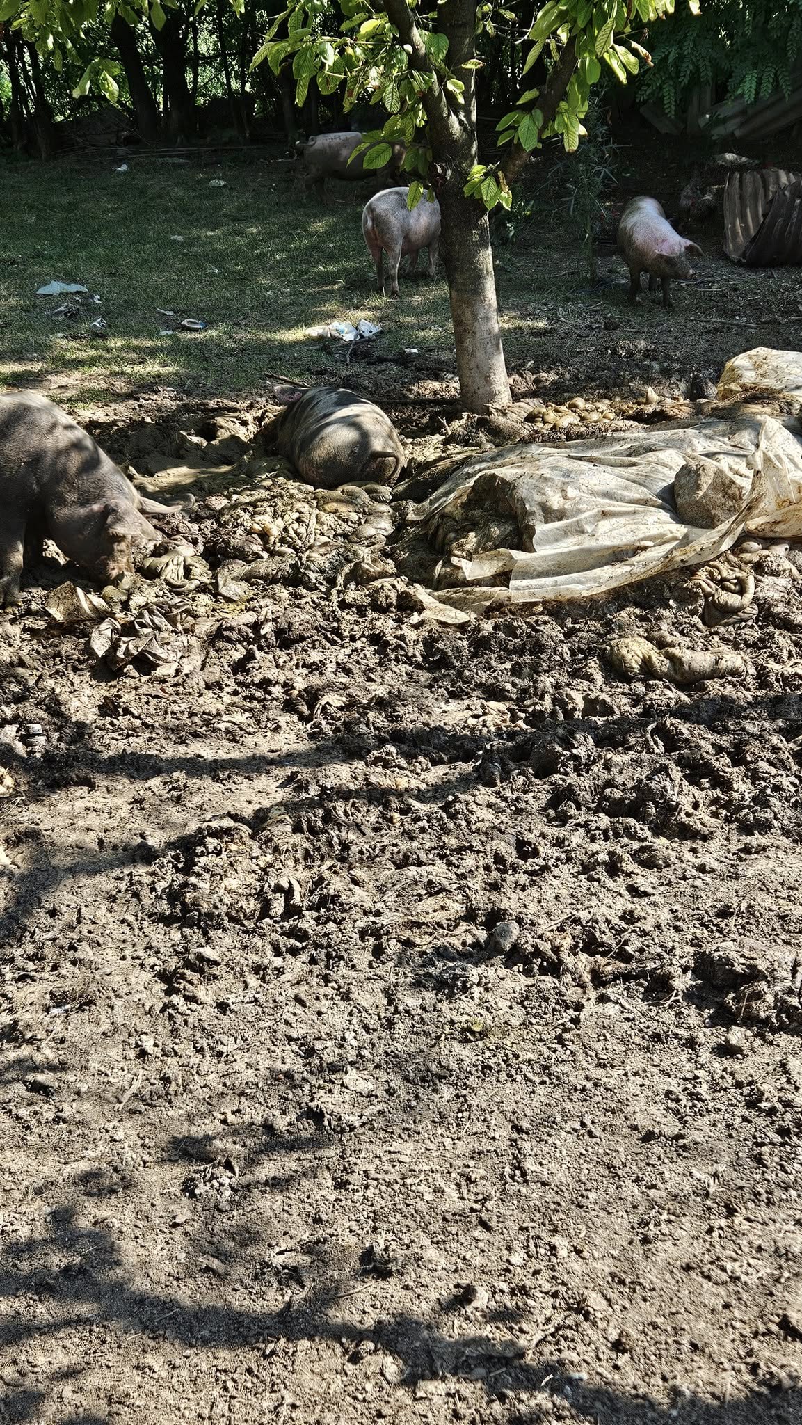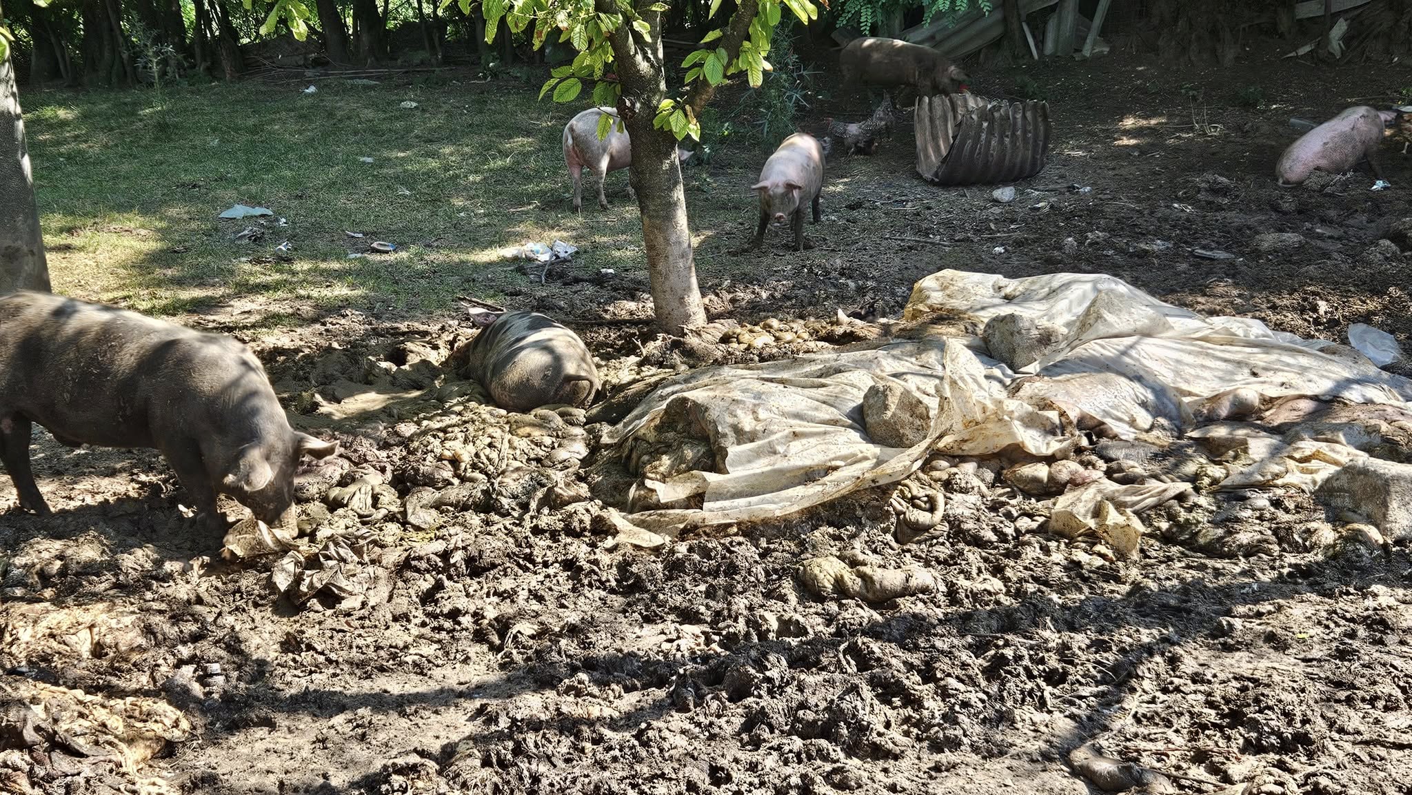 Deseurile erau parțial acoperite cu o folie de polietilenă. Proprietarul deținea un număr de 29 suine, o parte dintre acestea intrau în contact direct cu masa de deșeuri identificată.