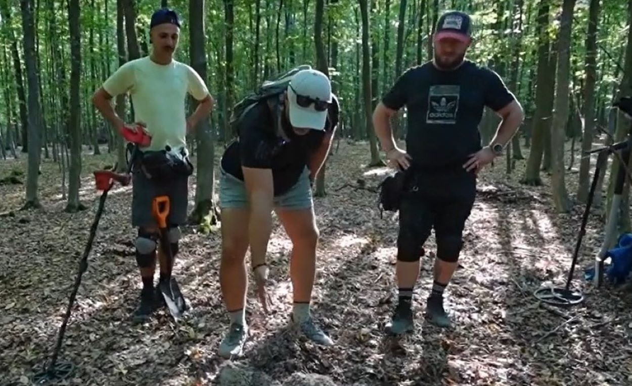 "Este locul unde am găsit tezaurul. În groapa asta am găsit colierul celtic. Aici, în această groapă am găsit un fragment de podoabă ceva şi aici am găsit, în cealaltă gropiţă, am găsit inelul", explică unul dintre cei trei bărbaţi.